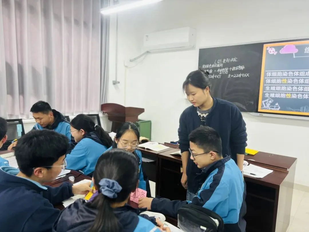 翟京瑶老师在《人的性别决定》一课中以探究为主线,设计了染色体观察、卡片组合模拟体细胞与生殖细胞染色体组成、糖果模拟精卵结合等实践活动,让学生在动手中突破重难点。课堂结合人口普查、性别比例等现实素材,将抽象的遗传知识与生活实际紧密联系,激发学习兴趣。