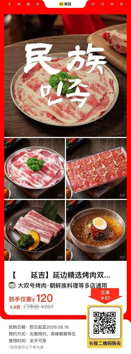 👉长按图片囤券,解锁延边烤肉!🔥