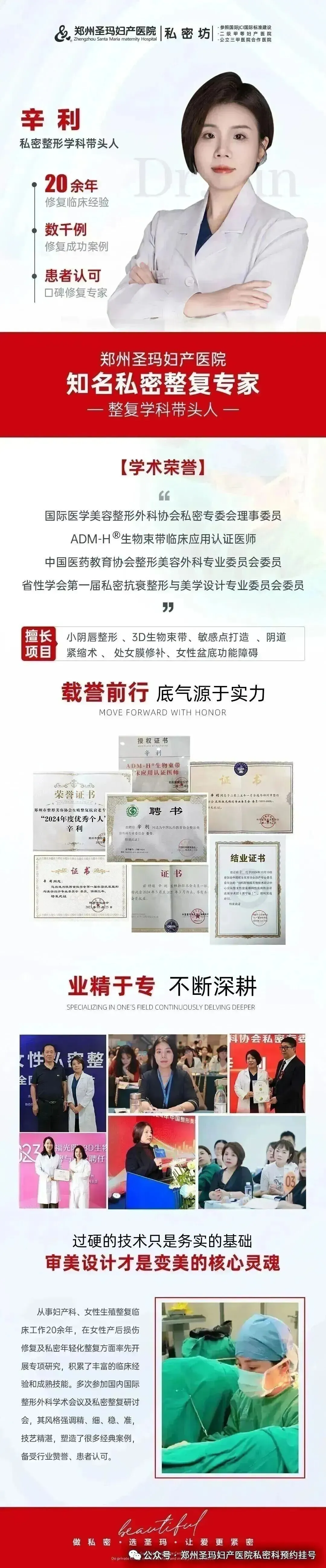 郑州圣玛妇产医院 · 私密坊是融合医、教、研、创新医学模式的专业生殖整复医美中心,是拥有妇科+整形外科双资质的医疗级私密整复医美机构,全面开展私密整形、私密美化、私密抗衰维养、女性功能复健、盆底康复及高难度的生殖整形修复等高品质诊疗服务,始终与世界私密领域共振,领跑于整复行业前沿。