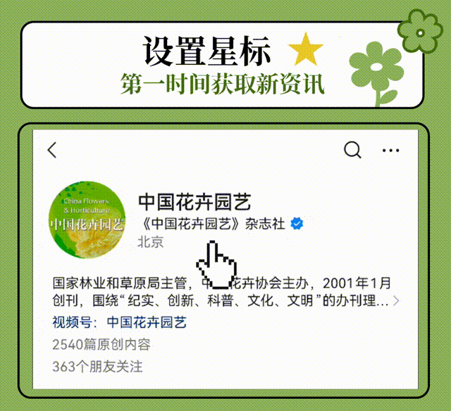 时常不能看到推送?找不到关注的账号?请您为“中国花卉园艺”公众号设置星标。操作方法如下: