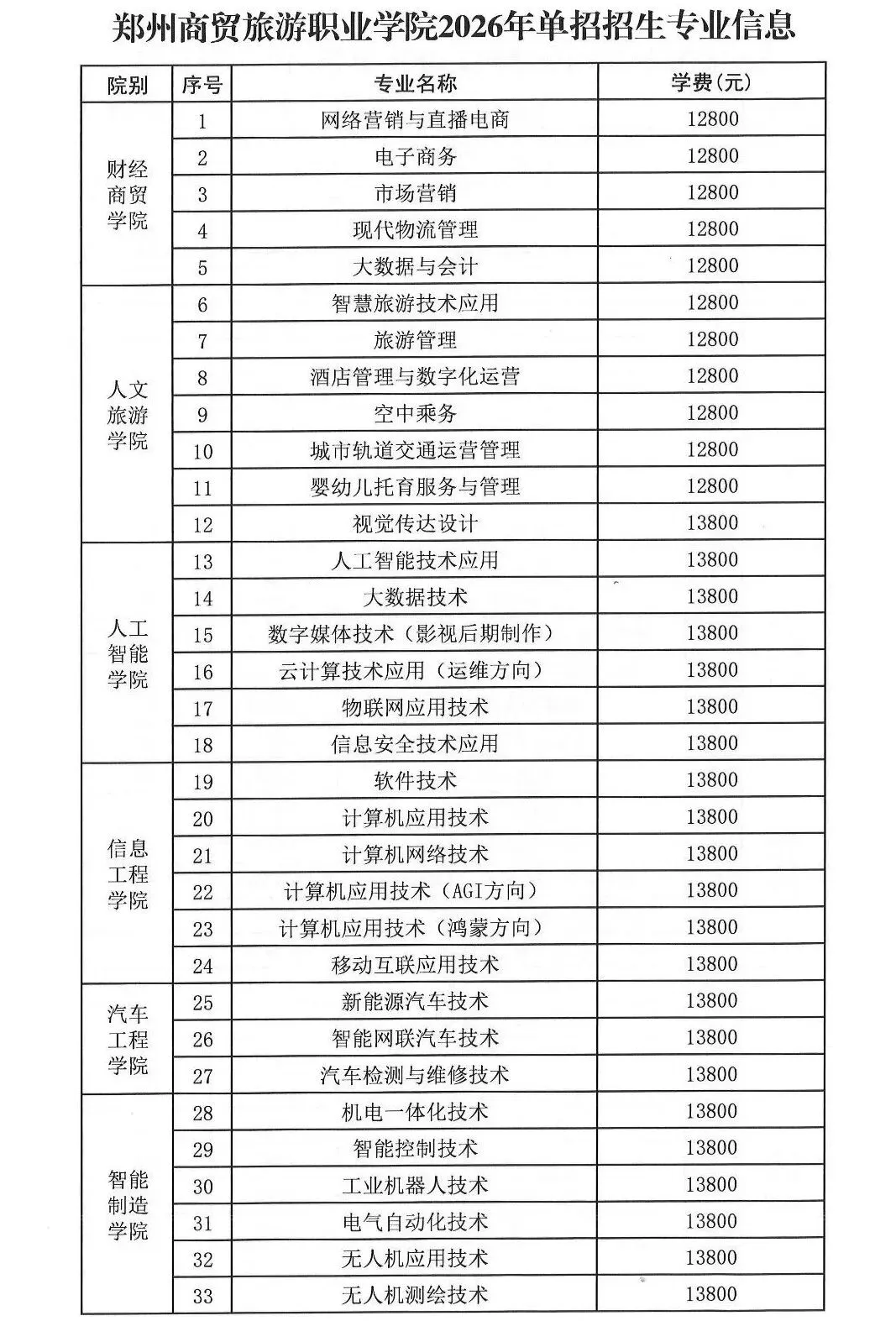 1.2026年学校单独考试招生专业、计划及学费详表附后。