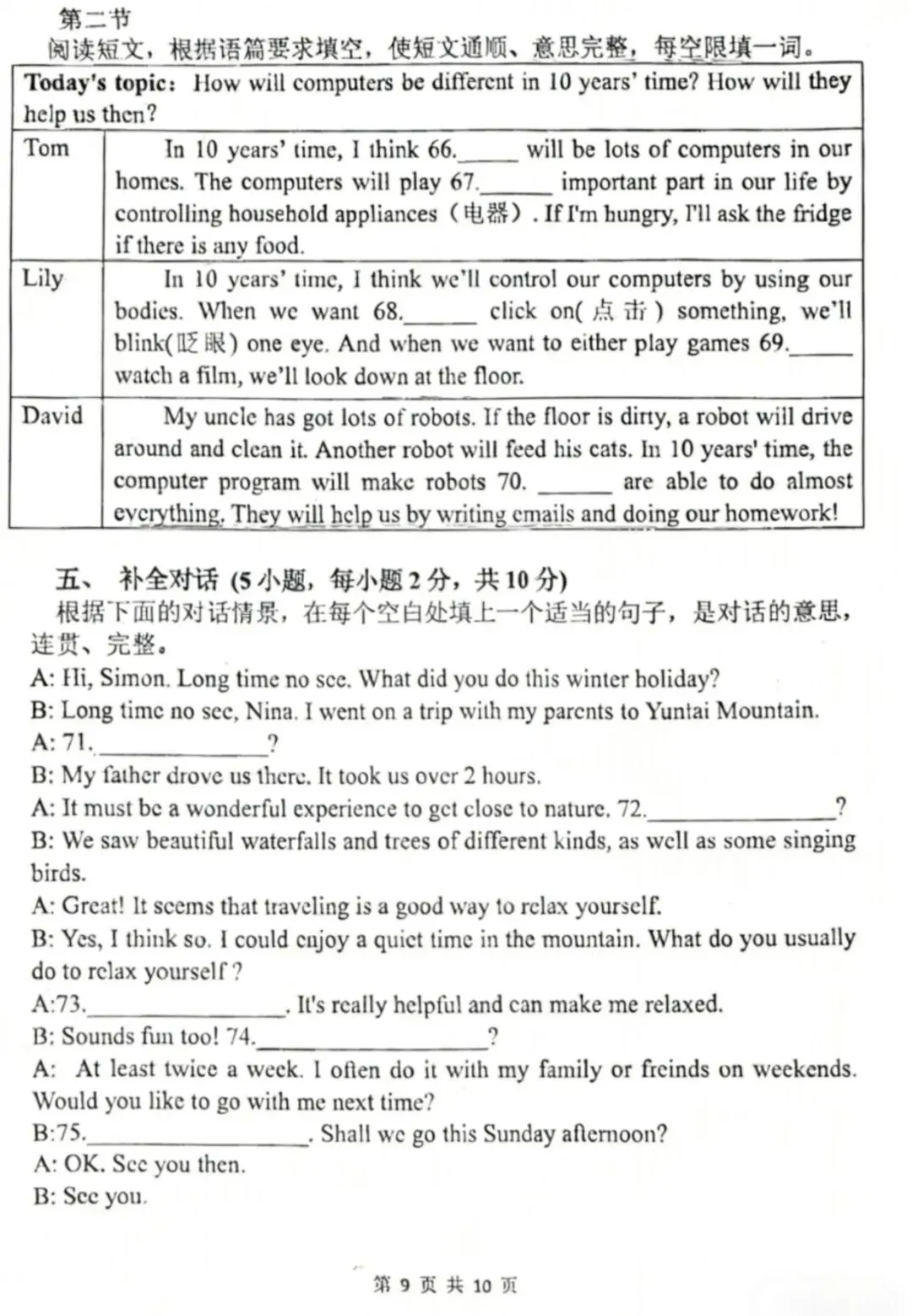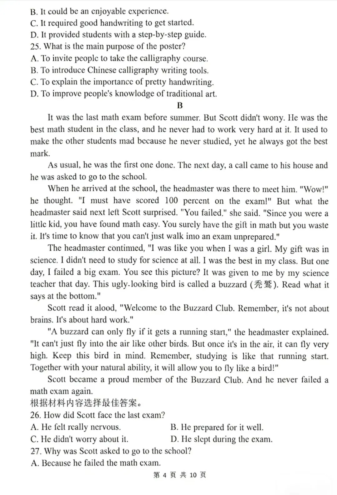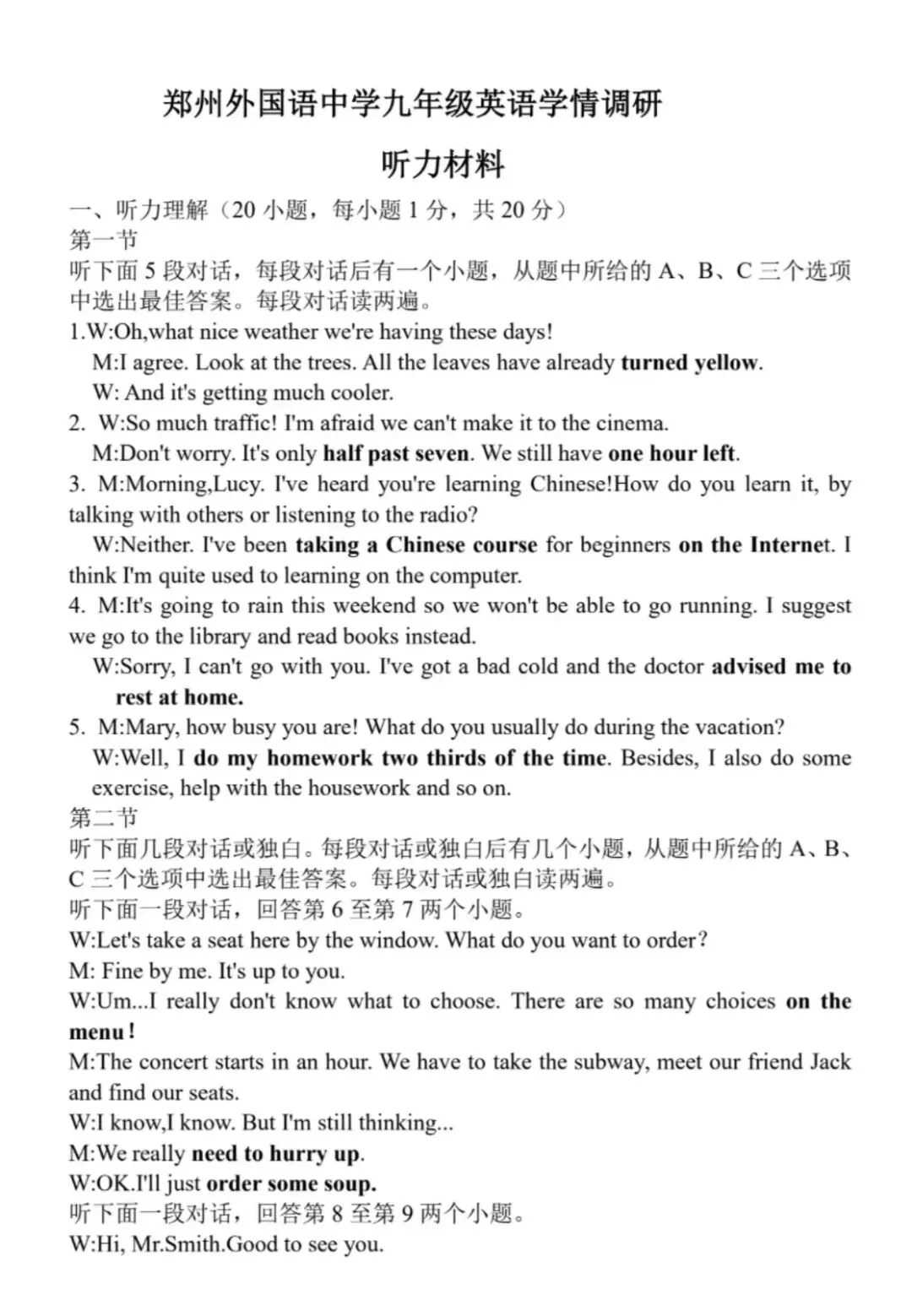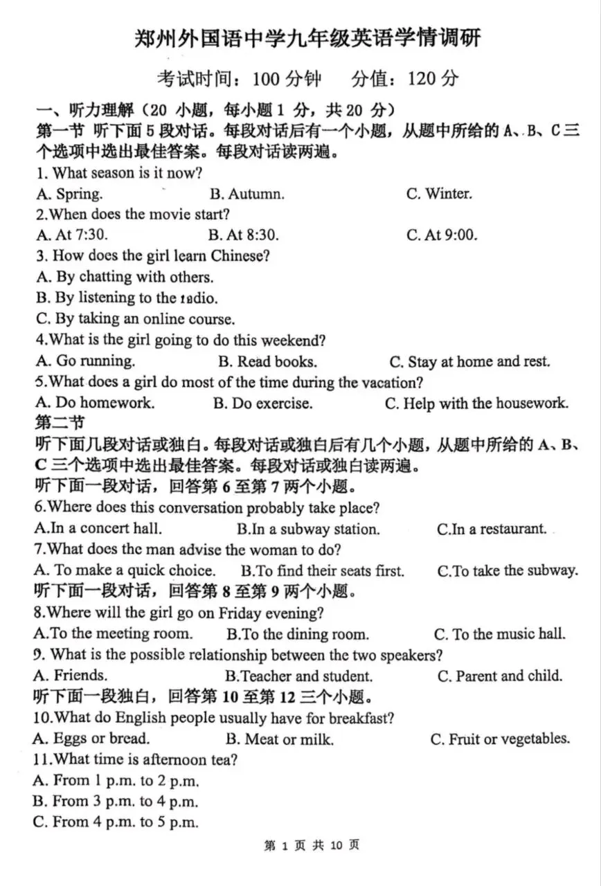 郑州外国语学院25--26一模考试英语题、听力材料及答案