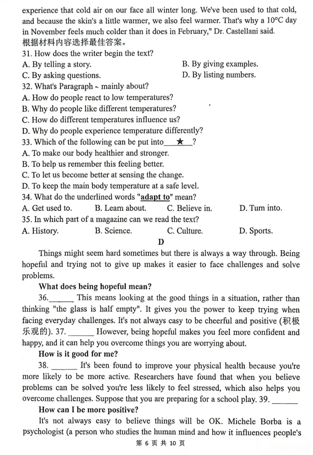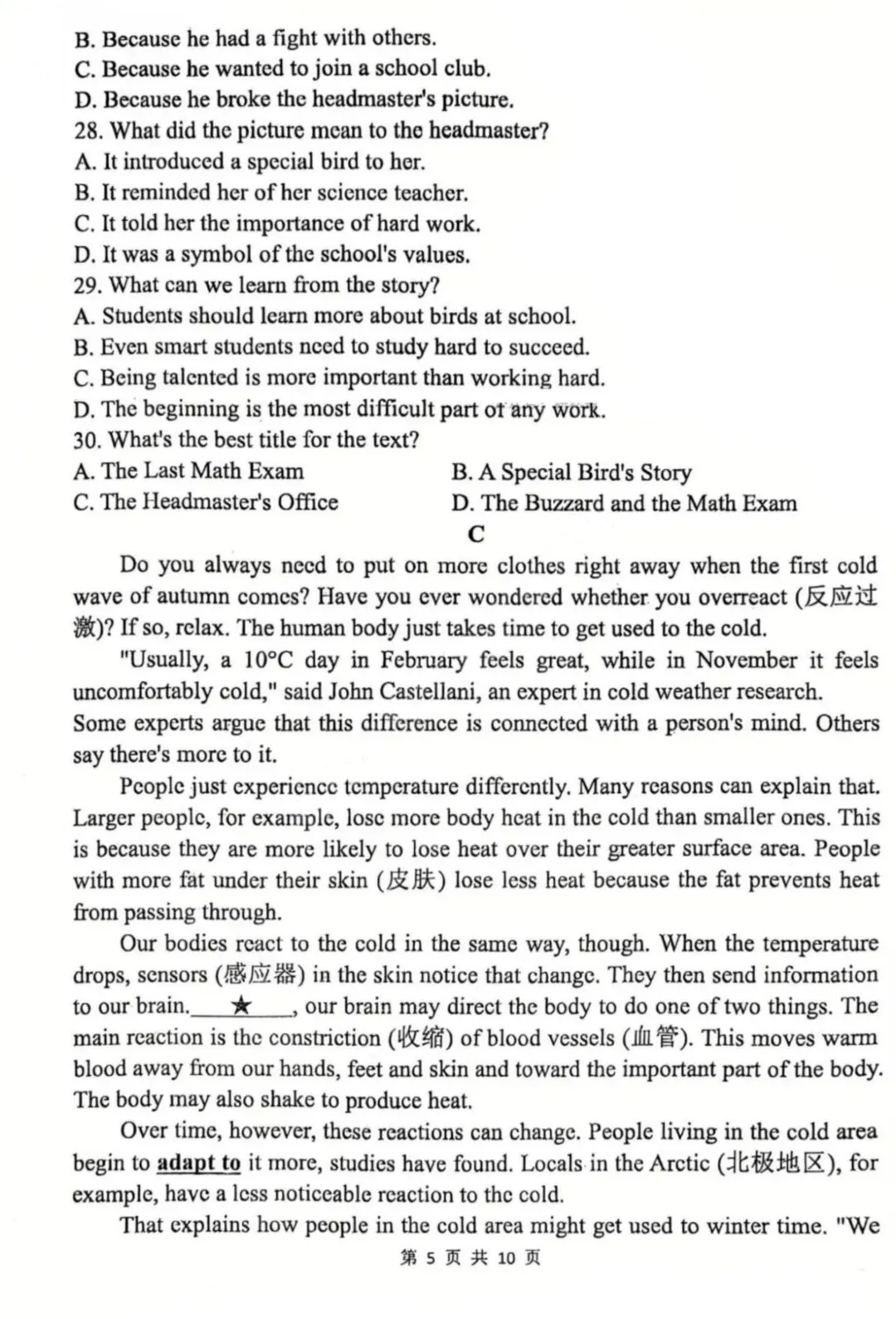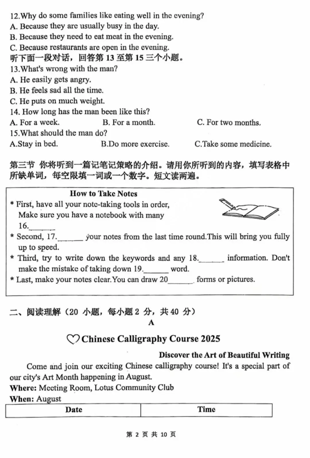 郑州外国语学院25--26一模考试英语题、听力材料及答案