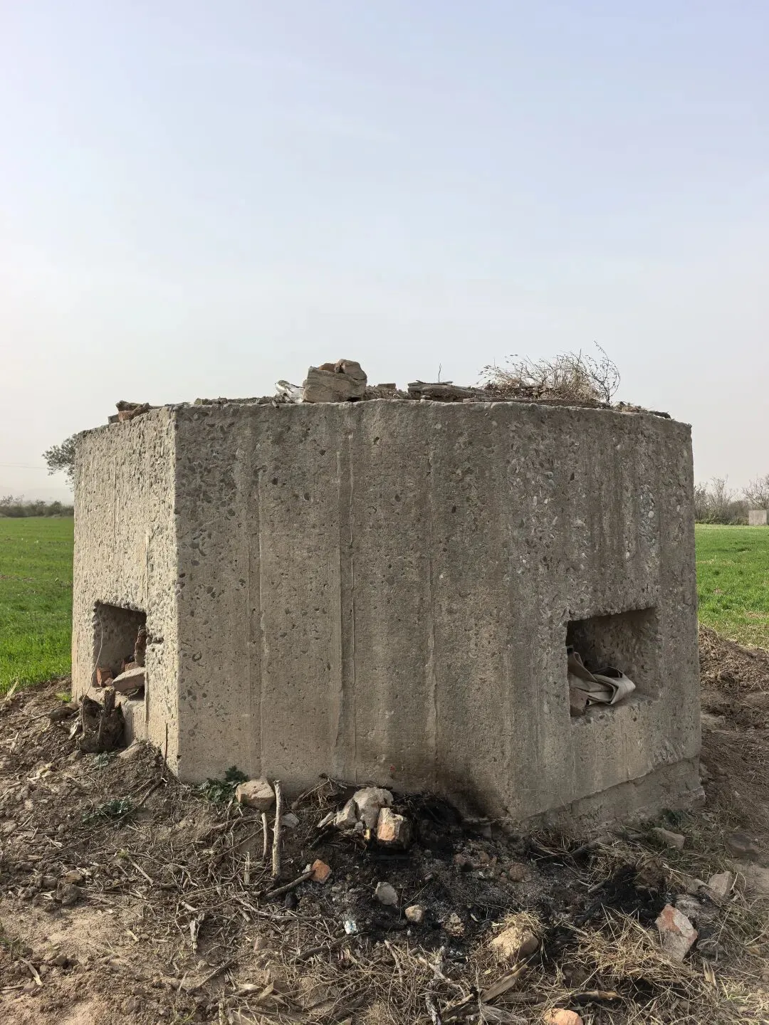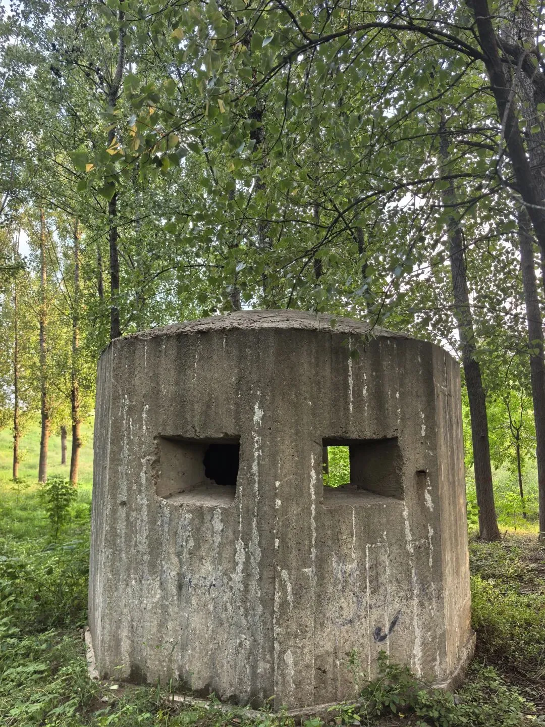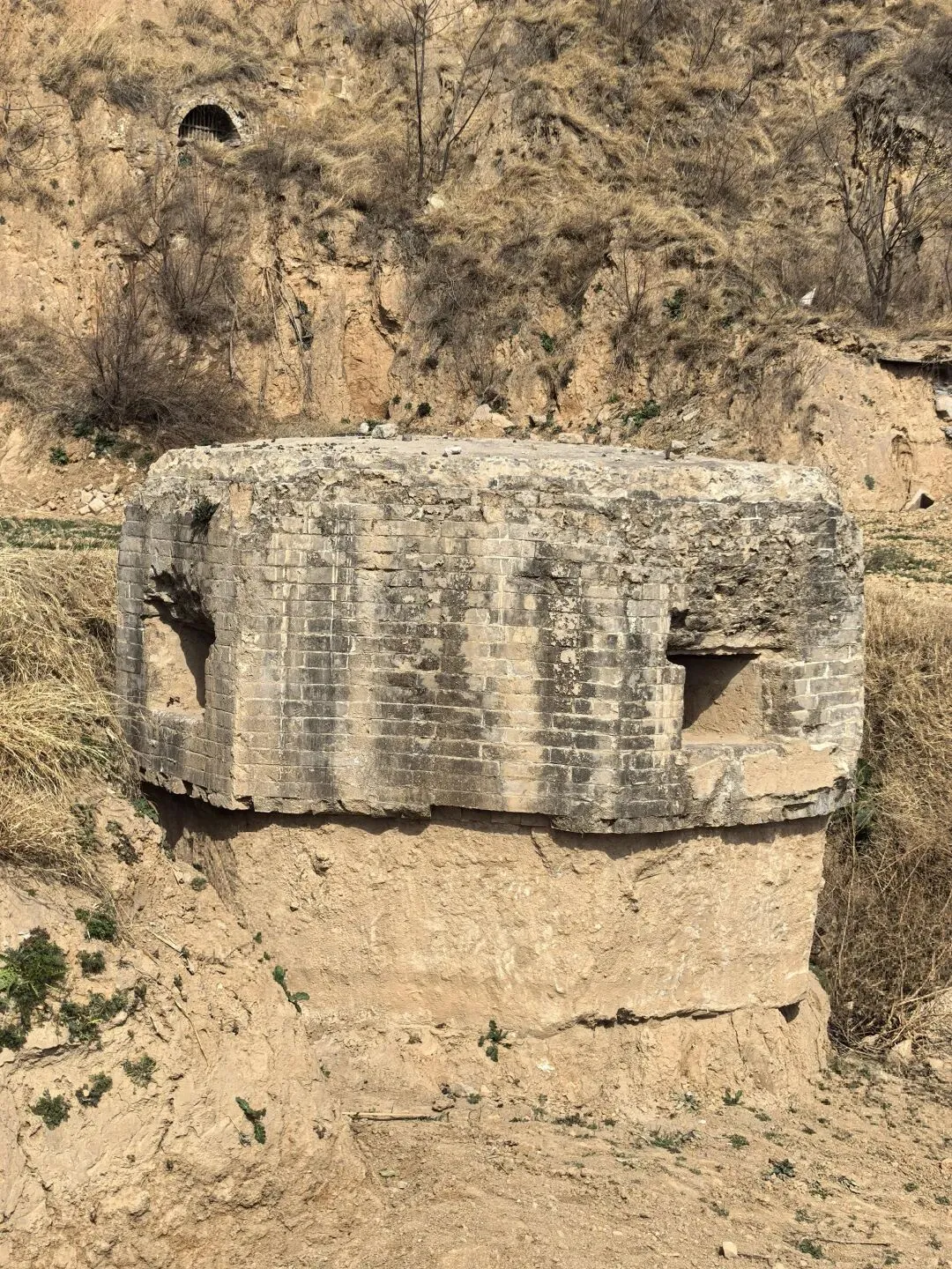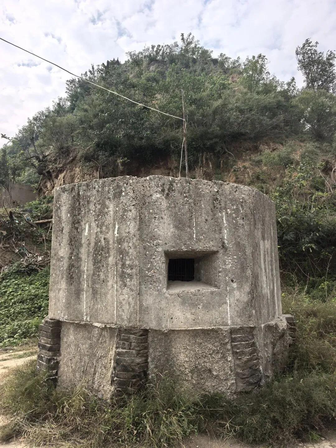 3.郑东新区杨桥村村民讲,这里有两个碉堡,一个在大堤南边,一个在西地。村里的老人朱廷玉92岁时在接受采访时讲,民国28年,也就是1939年,赶着马车为当地驻军、中央军拉石子、洋灰(水泥),这些碉堡都是驻军指挥,当地老百姓施工修建的,总共修了4个到5个月时间。当时日军还有渡过黄河呢,修碉堡主要是抗击日本军队的。实际上碉堡就没有使用。