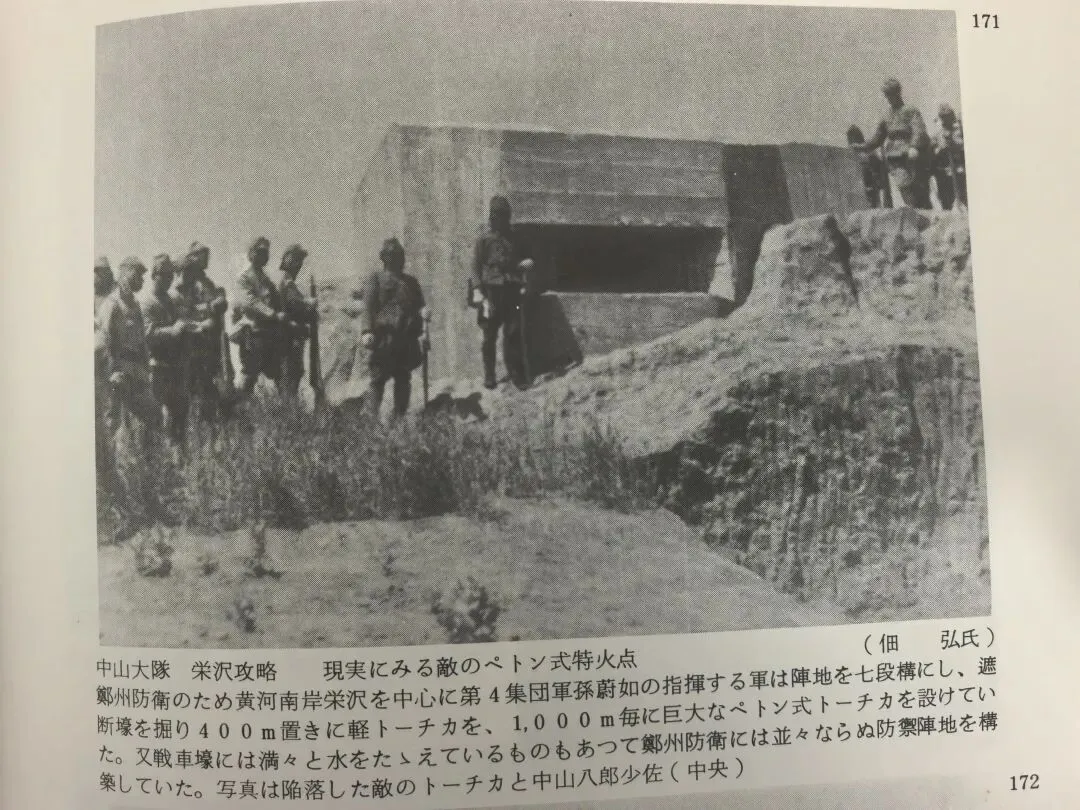 4.笔者从日本书籍上查到,1941年10月日军第一次占领邙山头和荥泽时照片,配有文字说明,“黄河南岸有面河峭壁,山腰巧妙地挖了洞穴,表面露出坚固的碉堡枪眼,有很深的交通壕相连。这样的防御据点遍布各处。”“为了郑州防御,第4集团军孙蔚如指挥部队以黄河南岸荥泽(古荥)为中心,将阵地分为七段,挖防空洞,每隔400米筑轻碉堡,每隔1000米筑巨大的平头式碉堡。另外,战车壕里也装满了水,在郑州构筑了非同寻常的防御阵地。”这些军史资料侧面说明,这些碉堡都是国军修筑的,不是日军修建的。不排除日军占领这些地区后,也修筑和利用了这些碉堡军事设施。图21、22。