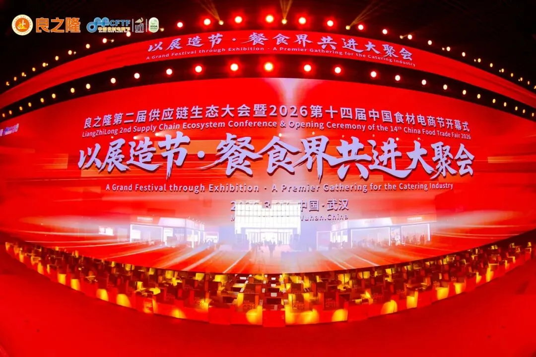 3月27日,良之隆·2026第十四届中国食材电商节在武汉国际博览中心盛大启幕。本届电商节以“以展造节,餐食界共进大聚会”为核心主题,汇聚食材产业全产业链优质资源,搭建起全国性的行业交流与合作平台,一众行业人士齐聚武汉,共探食材产业高质量发展路径,共谋餐饮行业增长新机遇。