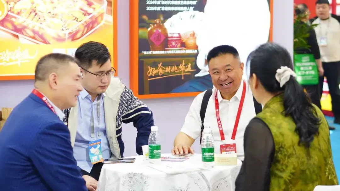 在朵颐猪蹄展位,考察团与企业负责人进行深入洽谈,详细调研食材的标准化研发工艺、全链条品质管控体系、全国化供应链布局及多元化市场应用场景,精准把握卤味特色食材的行业前沿发展动态与餐饮端核心消费需求趋势。