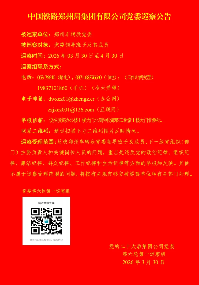 中国铁路郑州局集团有限公司党委巡察公告