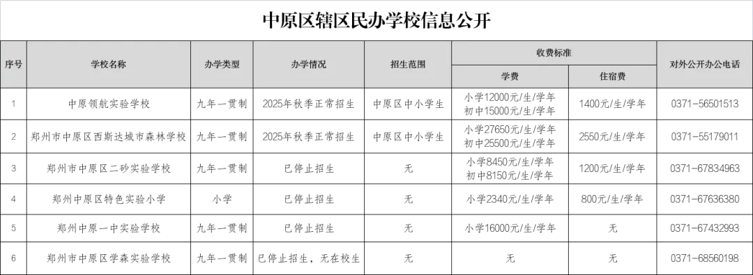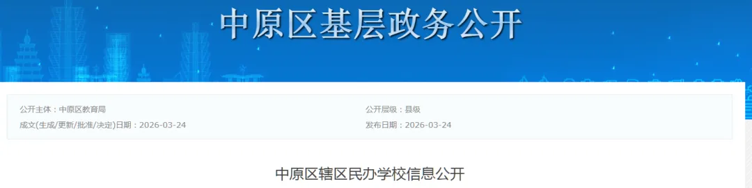 中原区辖区民办学校信息公开