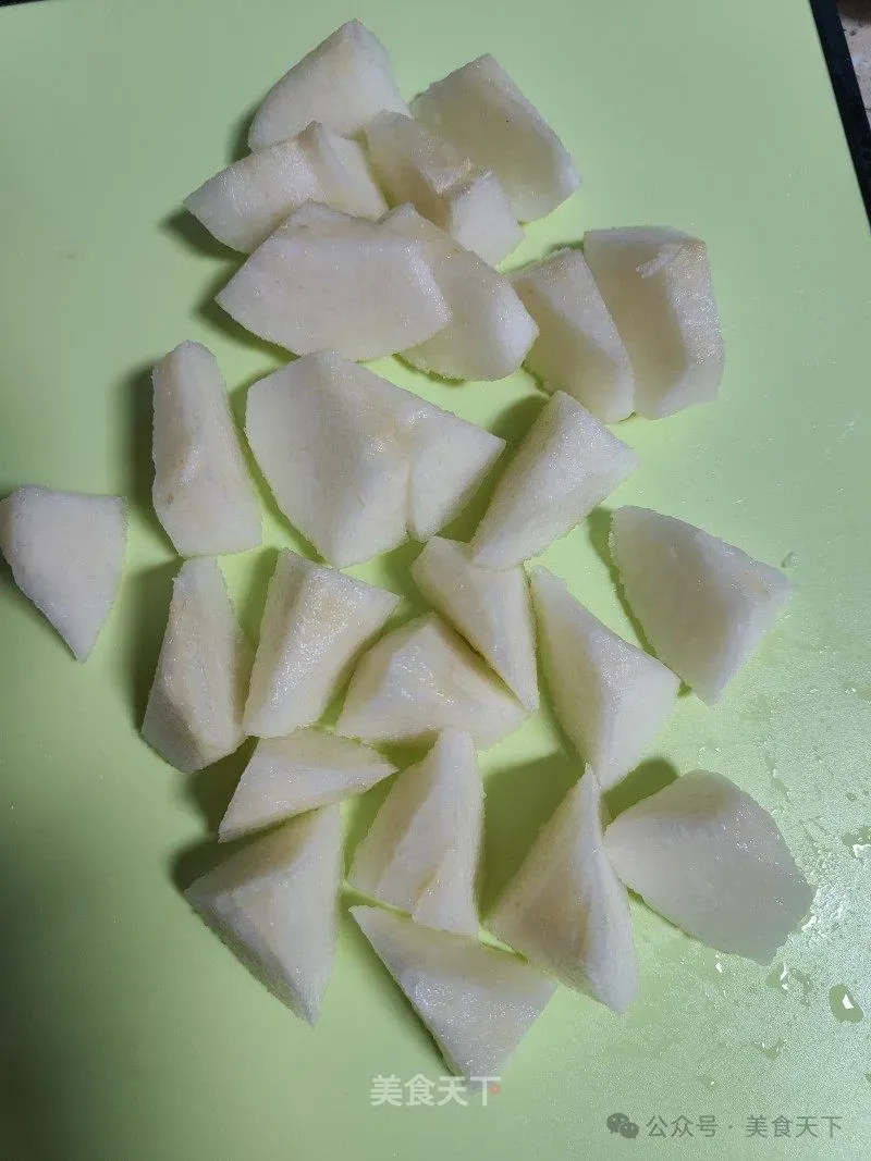 2. 雪梨切成小块。