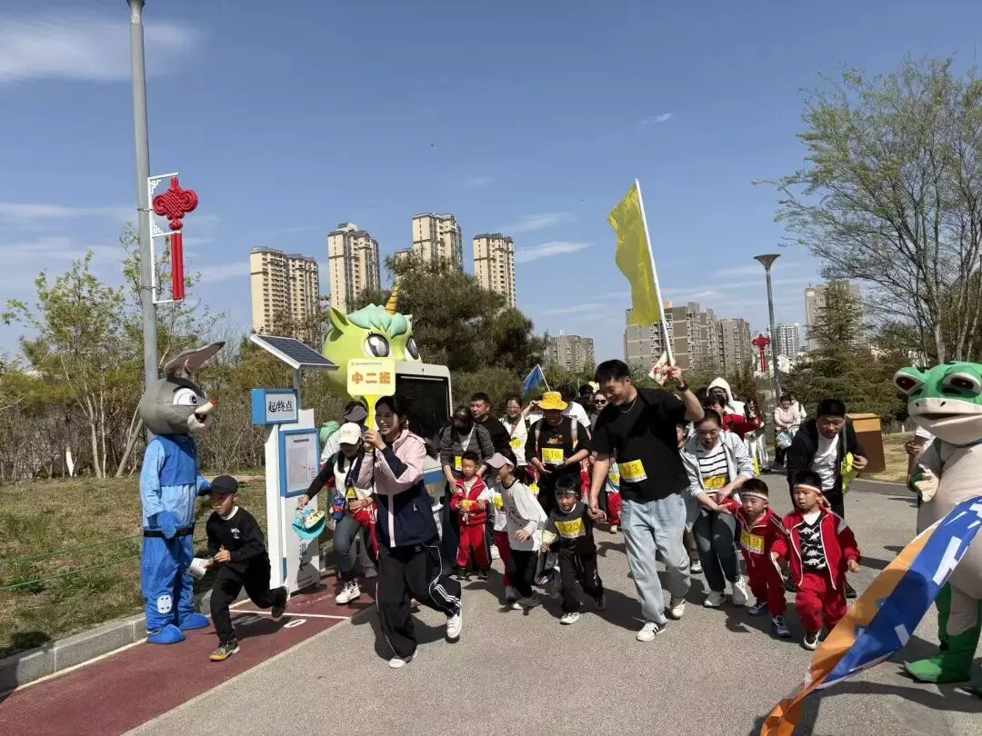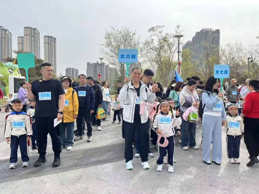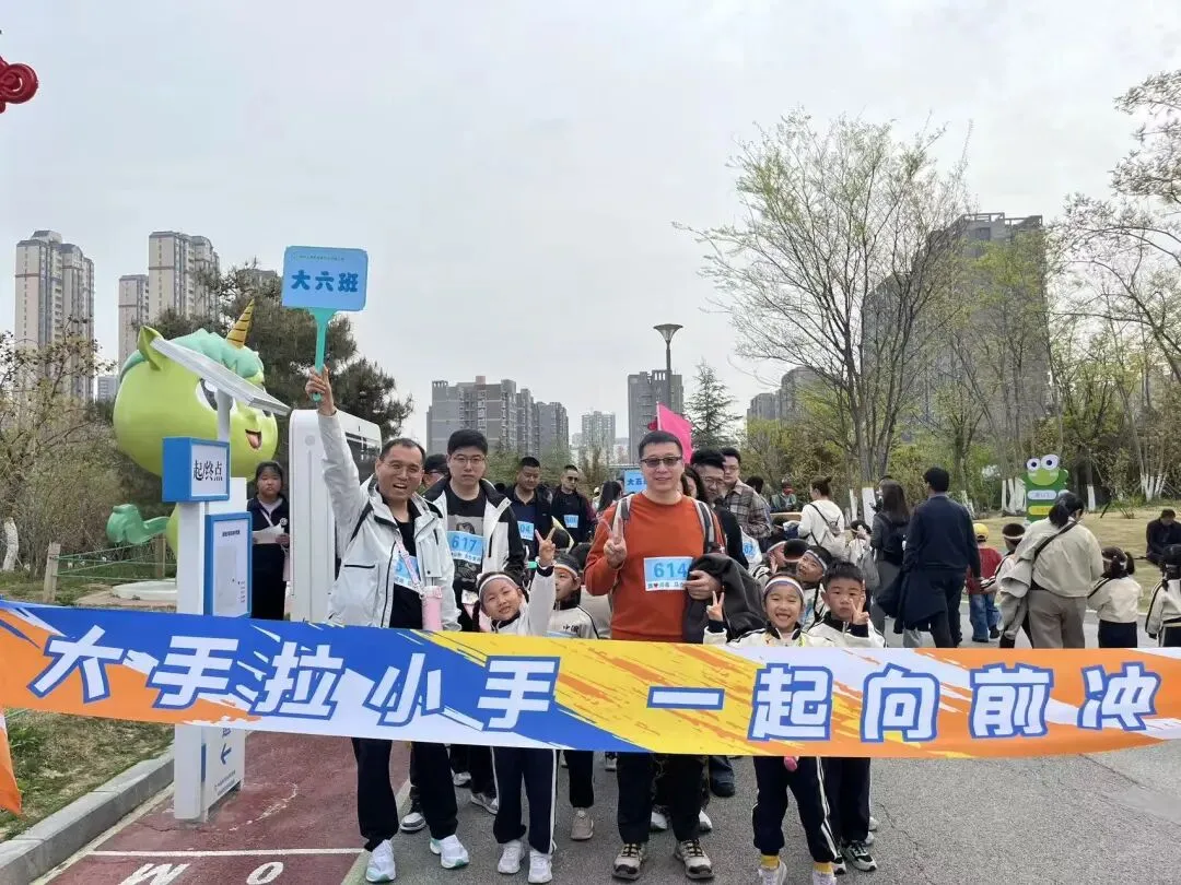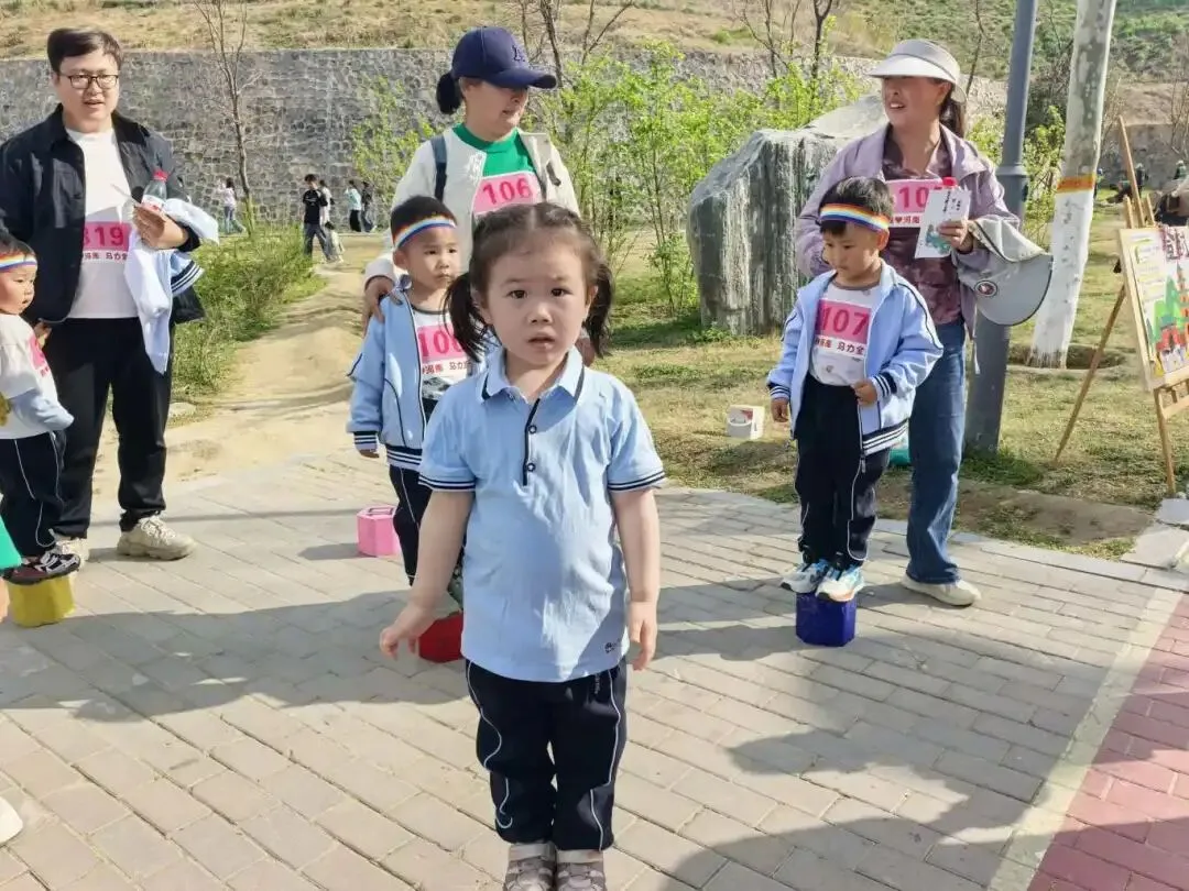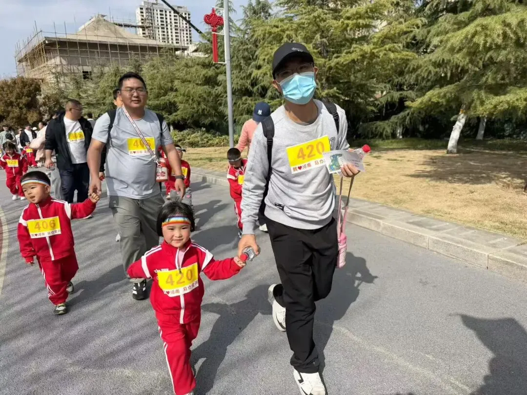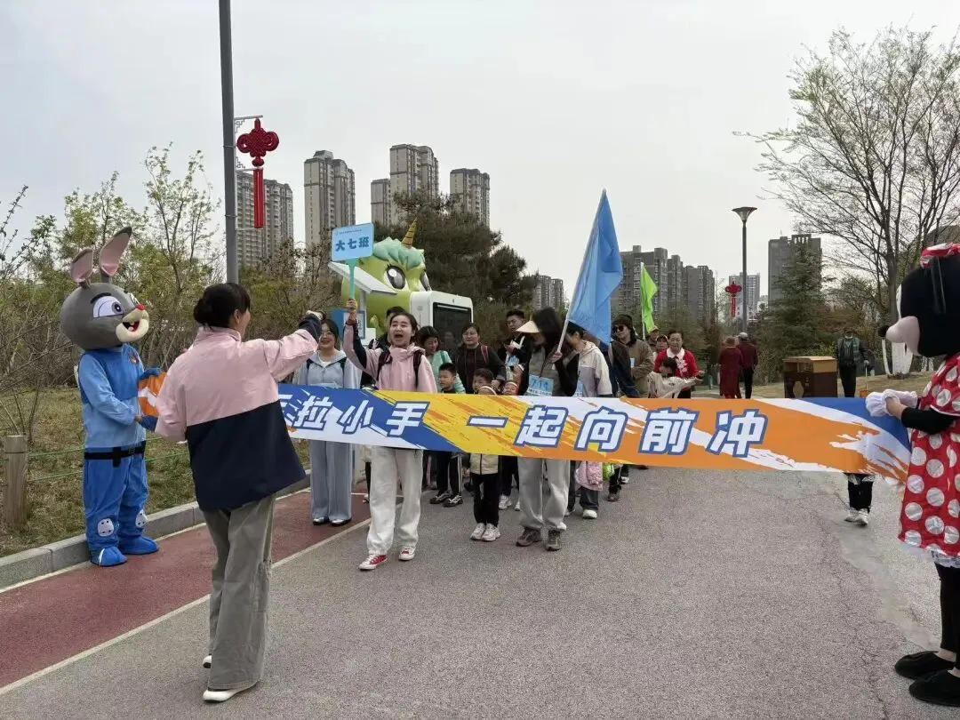“出发!”随着张园长一声清脆指令,亲子队伍有序启程,向着终点坚定前行。孩子们的小小身影穿梭在西流湖公园的五彩春色中,与身旁陪伴的家长相映成趣,构成一幅满是活力与温情的动人画卷。