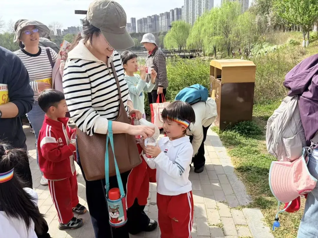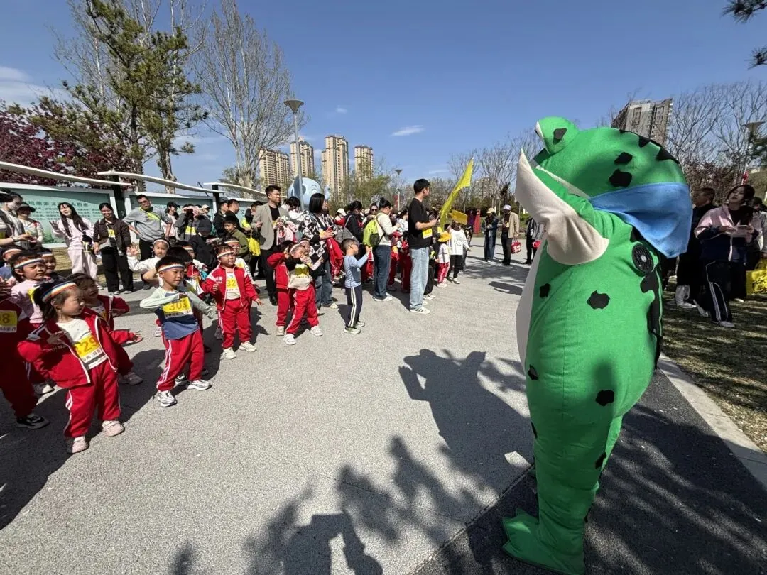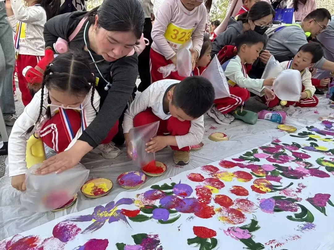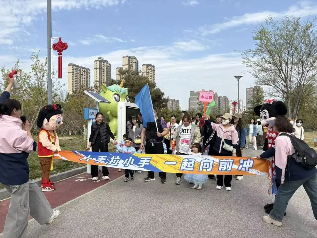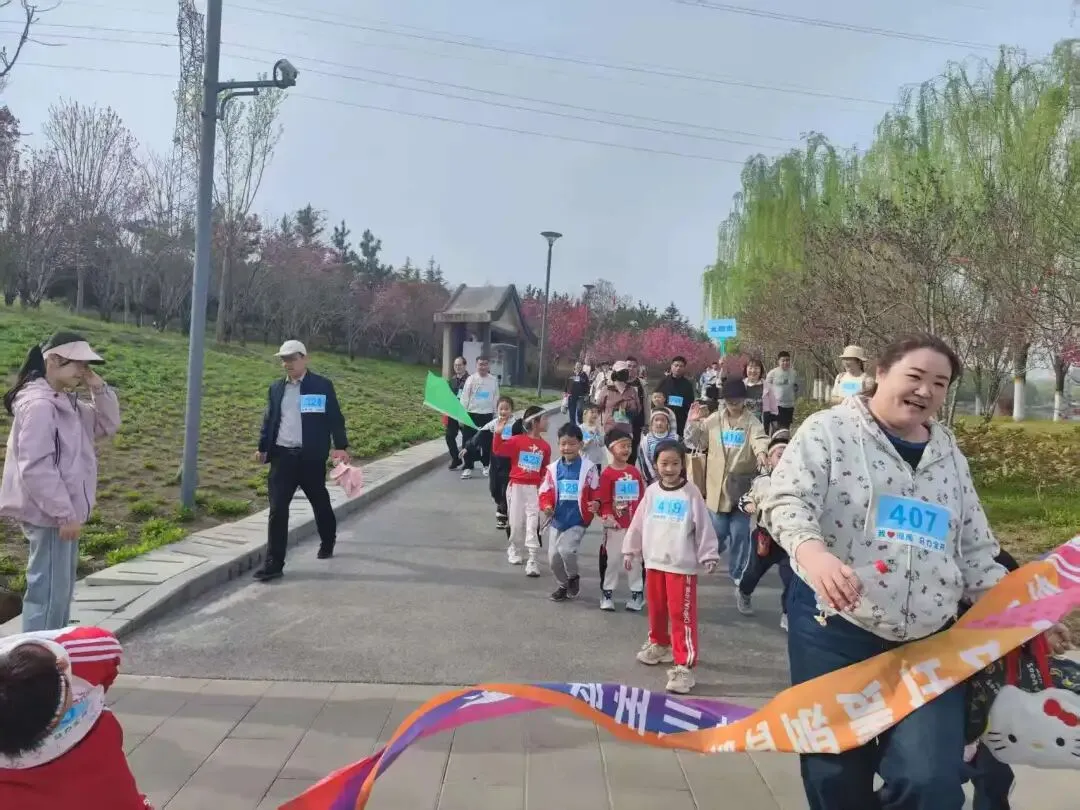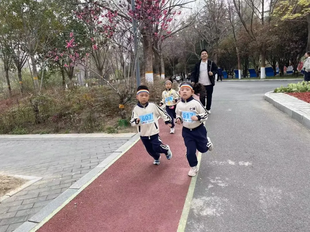 “出发!”随着张园长一声清脆指令,亲子队伍有序启程,向着终点坚定前行。孩子们的小小身影穿梭在西流湖公园的五彩春色中,与身旁陪伴的家长相映成趣,构成一幅满是活力与温情的动人画卷。