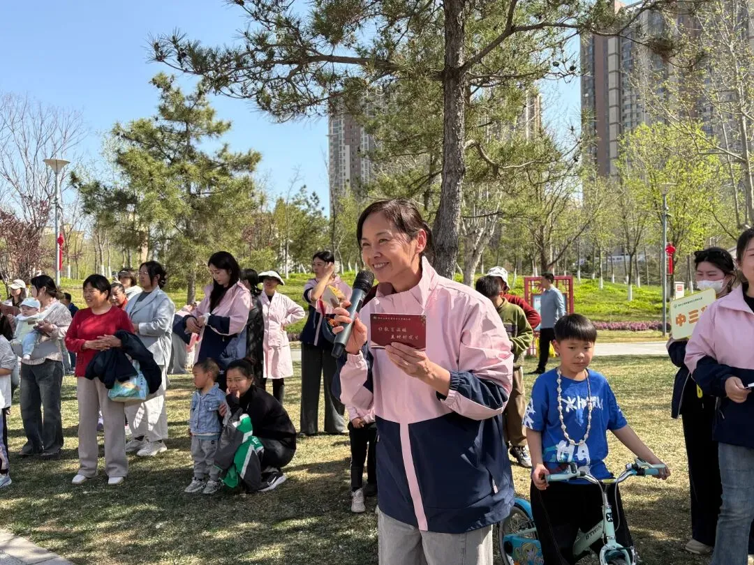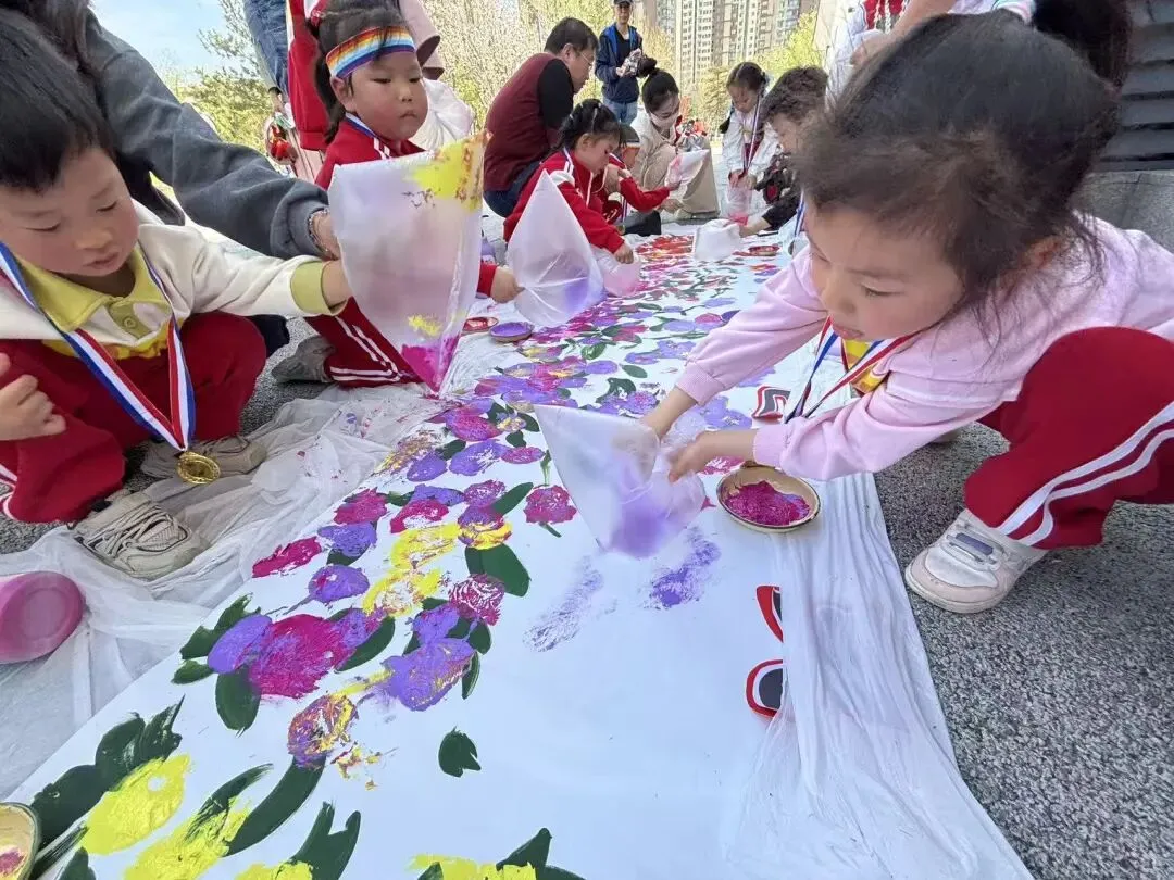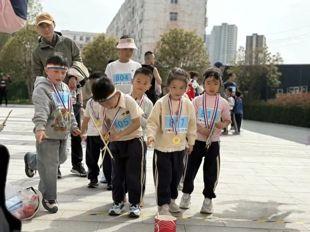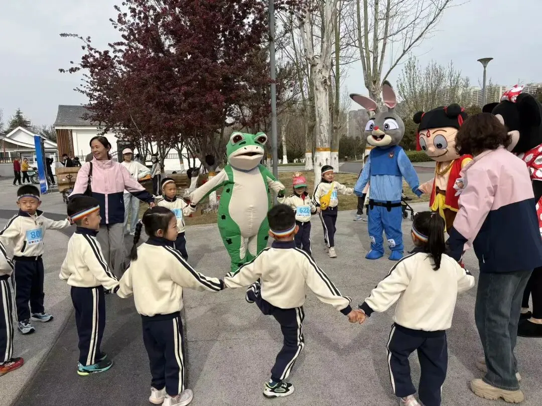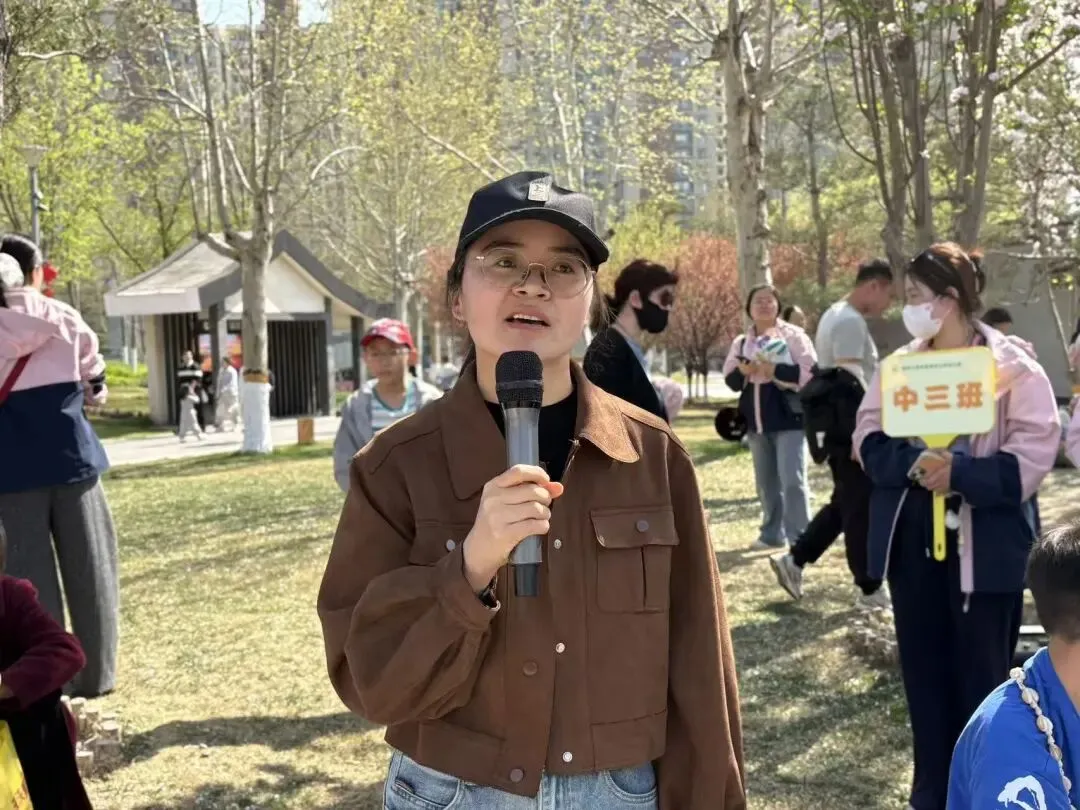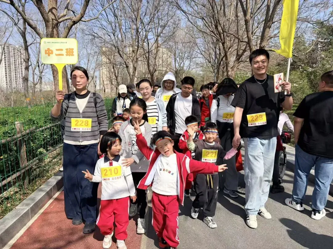“出发!”随着张园长一声清脆指令,亲子队伍有序启程,向着终点坚定前行。孩子们的小小身影穿梭在西流湖公园的五彩春色中,与身旁陪伴的家长相映成趣,构成一幅满是活力与温情的动人画卷。