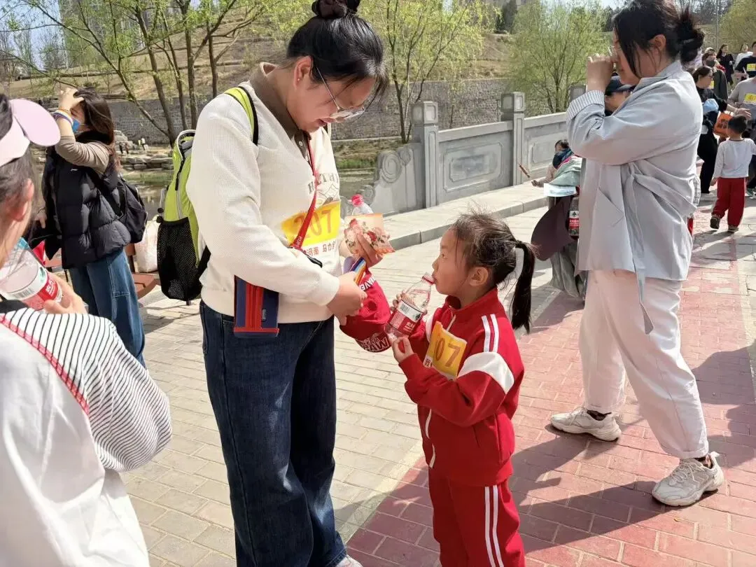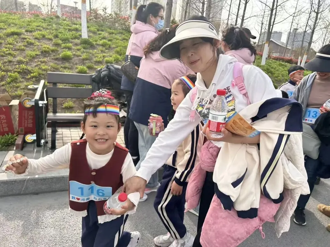 沿途中、设有能量补给站,为大朋友、小朋友们,补充能量,加油助力!老师们细心指引路线,用温暖的话语为孩子们加油打气,让每一步前进都充满力量。