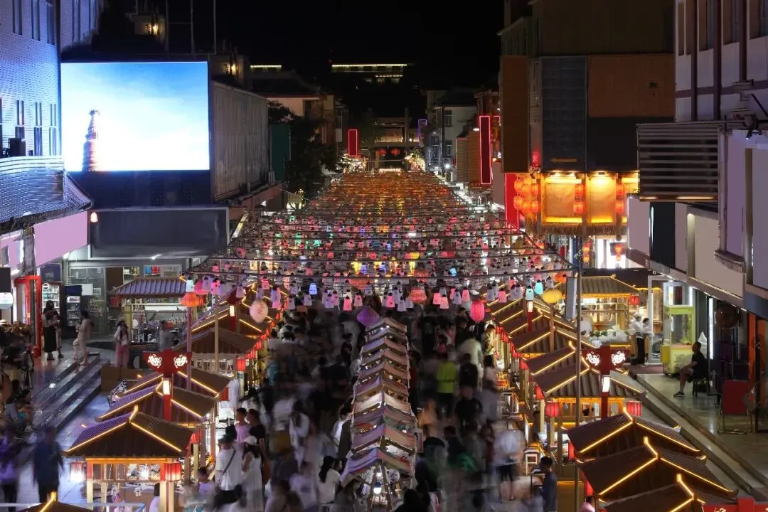 夜晚的的二七区德化步行街流光溢彩,活力十足,到处都充满了浓浓的烟火气息。不仅有小吃,还有超多潮流小店。