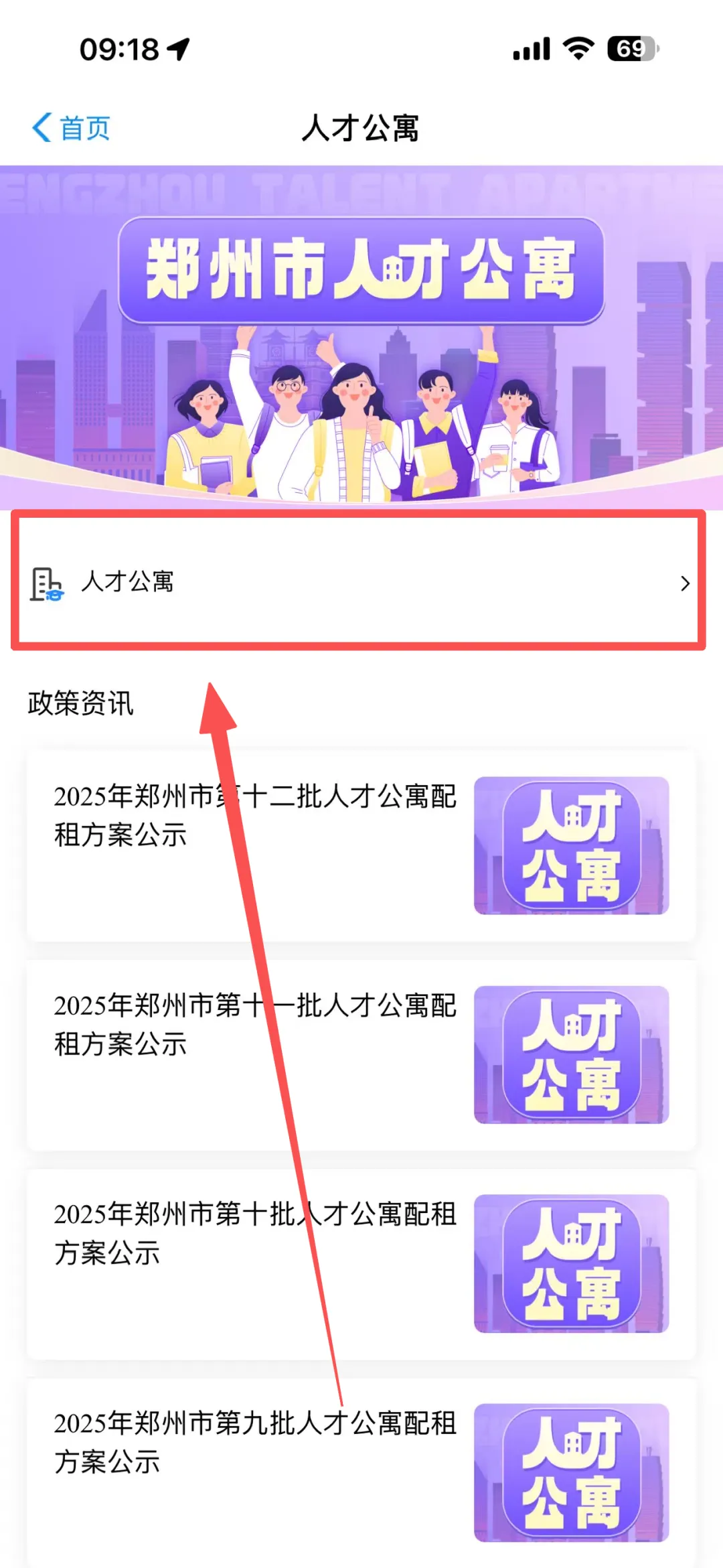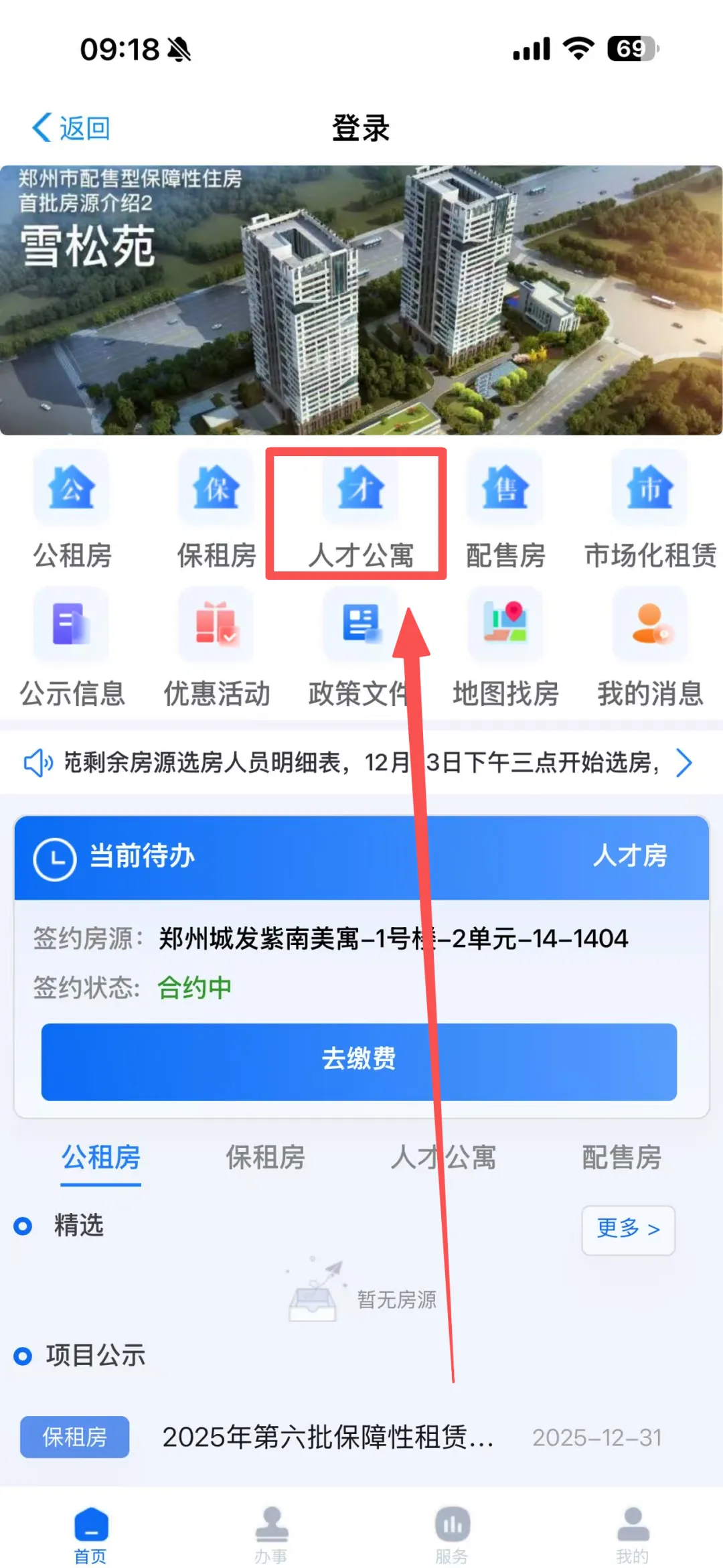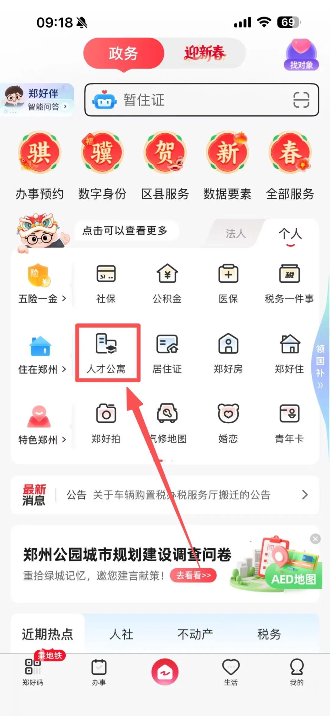 1️⃣进入郑好办APP,在主页点击人才公寓