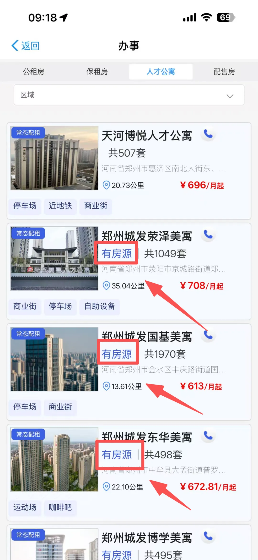 3️⃣点击“郑州市(除港区)人才公寓”。进入界面后点击【人才公寓】