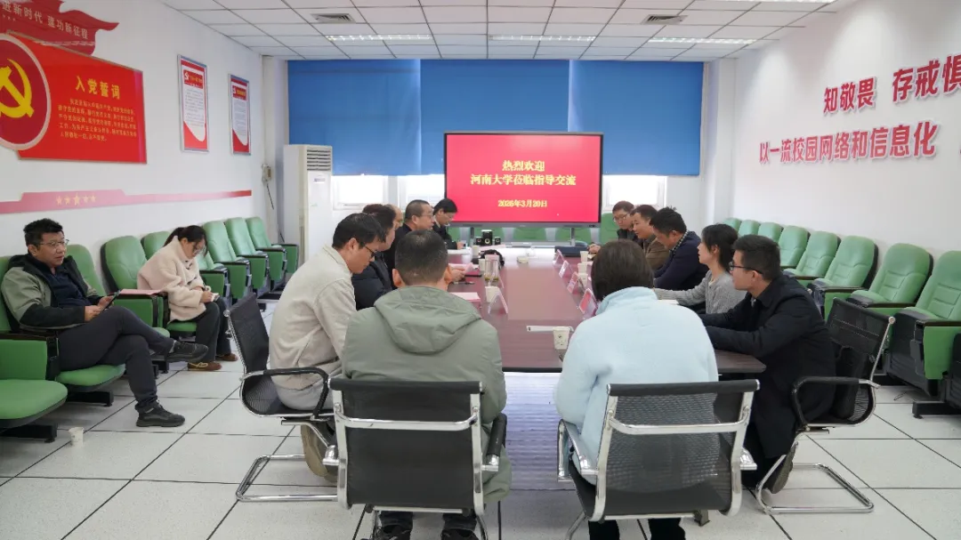 3月20日上午,河南大学信息化建设与管理办公室主任赵艳忠一行来我校信息化办公室、网络管理中心开展信息化重点工作专题调研。信息化办公室、网络管理中心主任张子蛟、副主任张宏坡、王国卿及相关人员参加座谈。