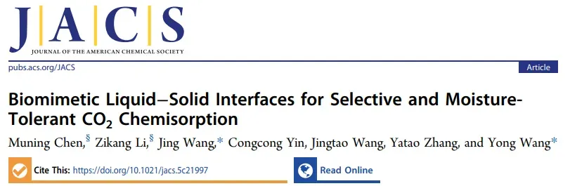 本研究的核心贡献在于提出了一套界面配位化学驱动的多孔液体设计范式:利用功能化离子液体在COF-IL界面原位生成酶仿生活性位点,同时通过极性梯度界面层实现CO₂准入与水分子排斥的反直觉界面分离,将多孔液体从被动物理吸附体系升级为化学定义的选择性捕集平台。该研究为以下方向提供了重要启示:(1) 在流态软物质体系中稳定化配位活性位点的普适性界面工程策略;(2) 基于极性梯度设计实现分子选择性穿透的新机制;(3) 利用仿生化学在液相多孔介质中构建耐湿选择性活性中心的概念验证。文章信息