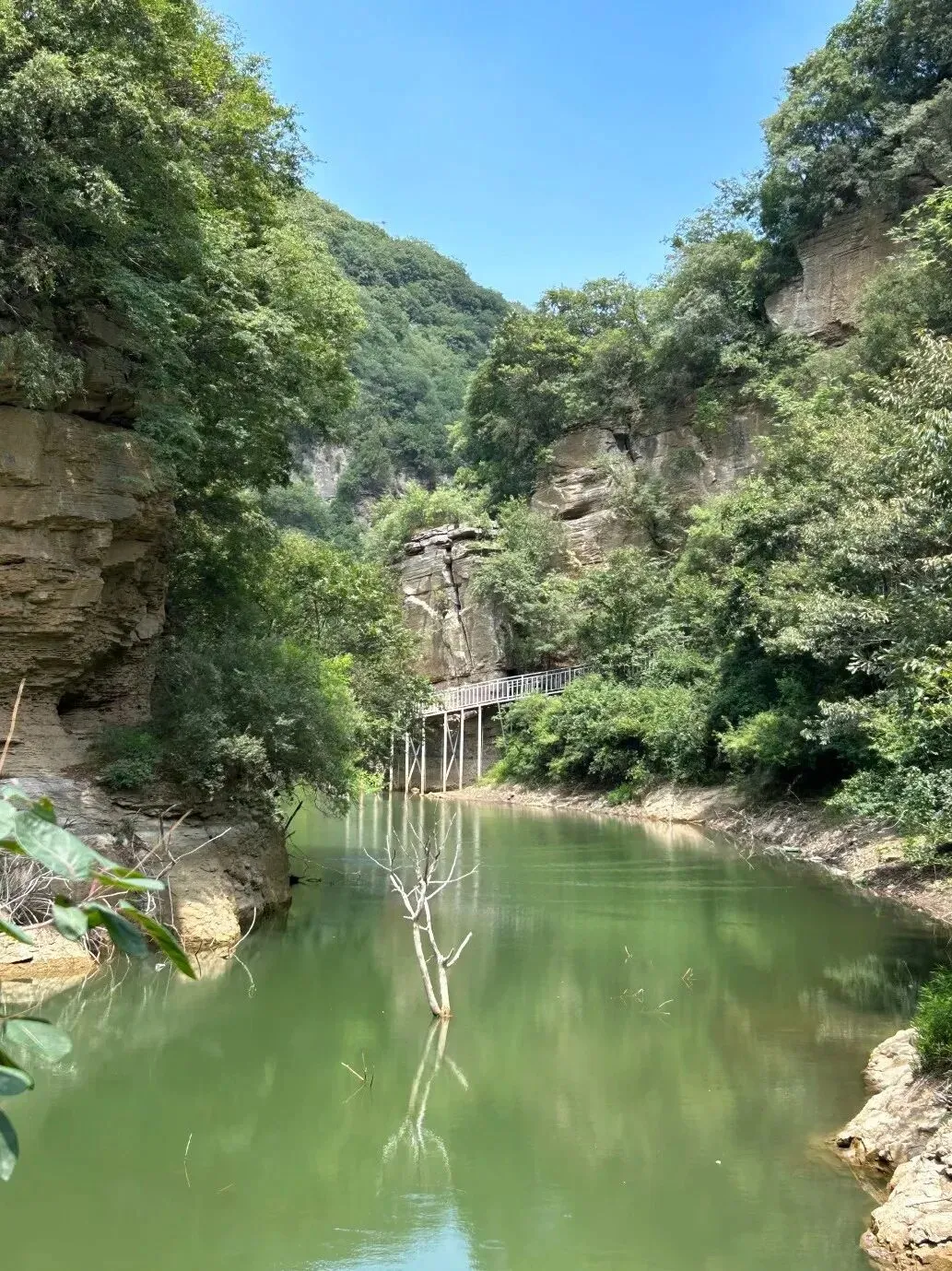 海拔600多米的峡谷,绿荫如盖,即便是夏日来此也清凉不晒。步道平缓,无陡坡险段,即便是三岁的小娃娃也能自己走上一程。