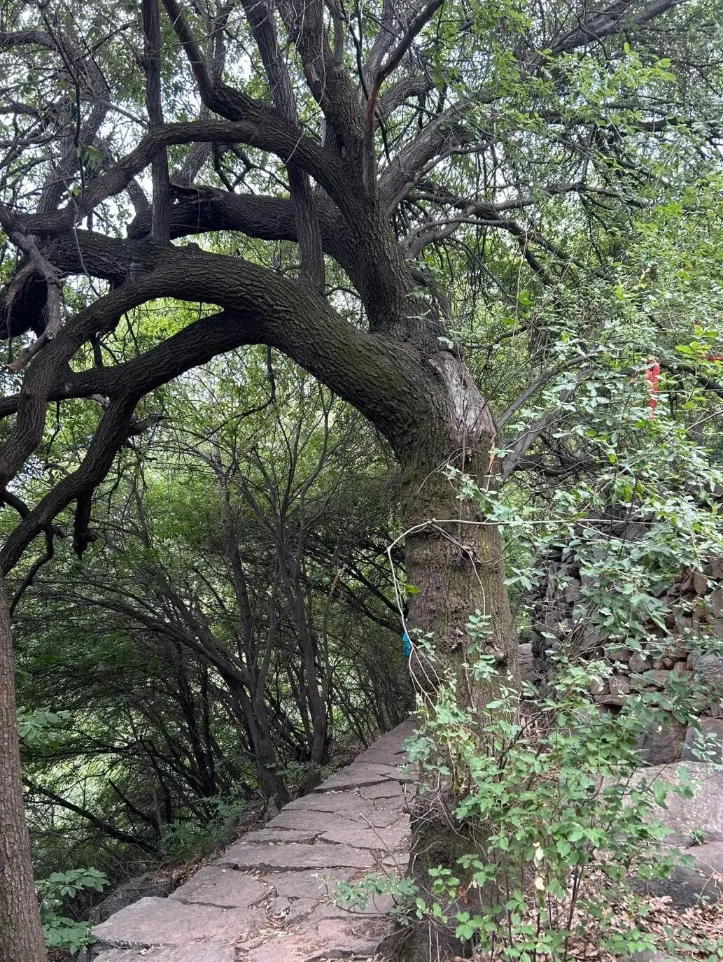 登顶后,可见老房子,自此左转顺坡下山。沿途会经过网红“连理枝”等打卡点。行至半山腰,别忘了光顾那里的小卖铺。