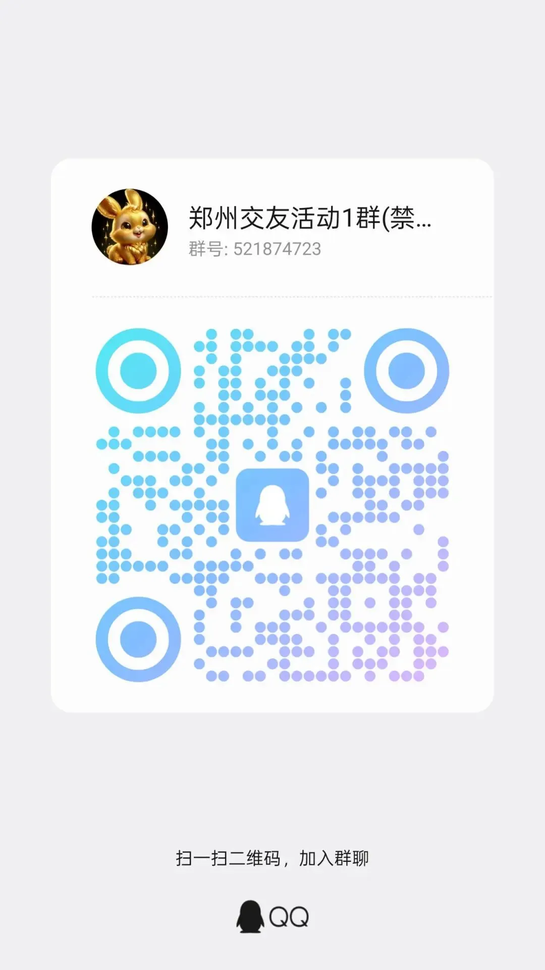 仅限郑州地区常驻人士入群,群内可发交友信息,可互加好友私聊,禁发广告!