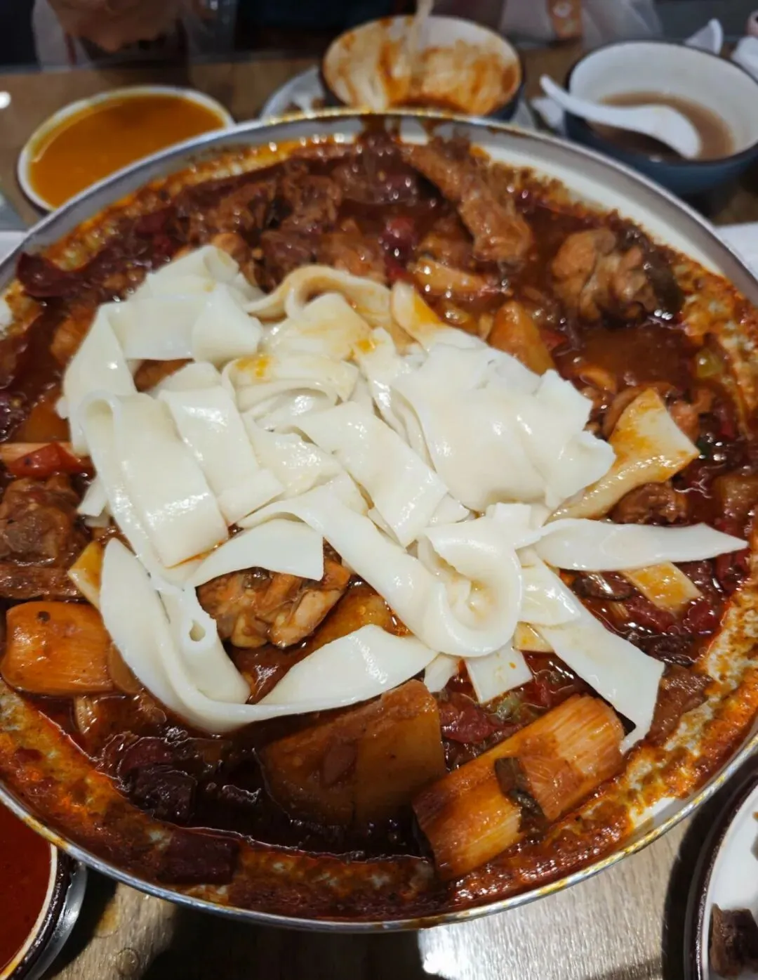 郑州这家宝藏大盘鸡店分量超级实在,鸡肉鲜嫩入味,土豆软糯沙绵,皮带面吸满汤汁超级香,口味正宗不油腻,性价比超级高,朋友小聚喝酒的好地方,值得推荐。