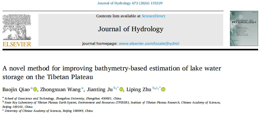 精选理由:2026年3月,郑州大学的Baojin Qiao等研究人员在《Journal of Hydrology》期刊上发表了题为《A novel method for improving bathymetry-based estimation of lake water storage on the Tibetan Plateau》的研究成果。