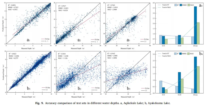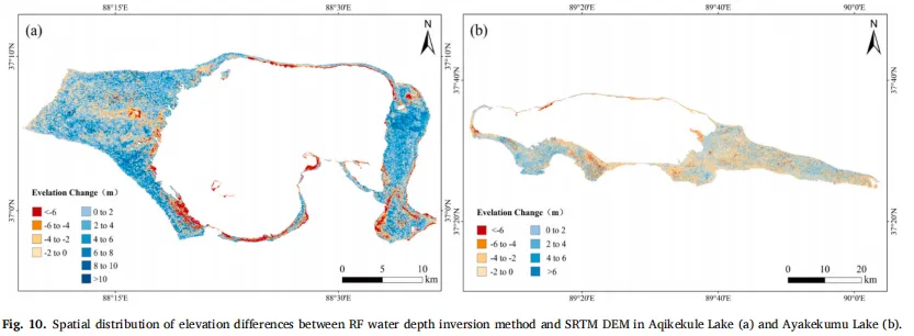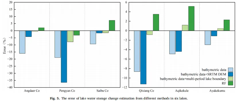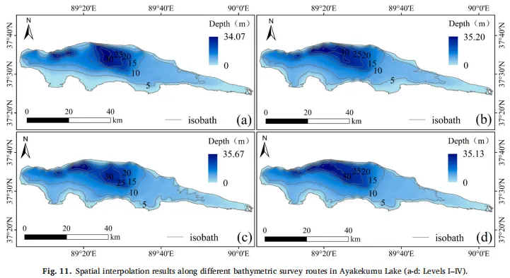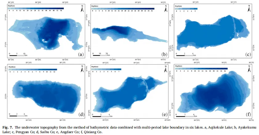 本研究的核心问题是如何解决青藏高原湖泊测深数据的稀疏性问题,尤其是在湖泊岸边区域的数据缺失。研究提出,通过结合历史湖泊边界与测深数据,采用多期湖泊边界插值方法,结合RF深度反演模型,重建了湖泊的水下地形,并对水储量进行了估算。结果表明,该方法相较传统的单一测深数据插值方法,能提高水储量估算精度,平均误差减少了11.98%。这一方法不仅能更好地重建湖泊水下地形,也为其他湖泊的水储量评估提供了新的技术路径。