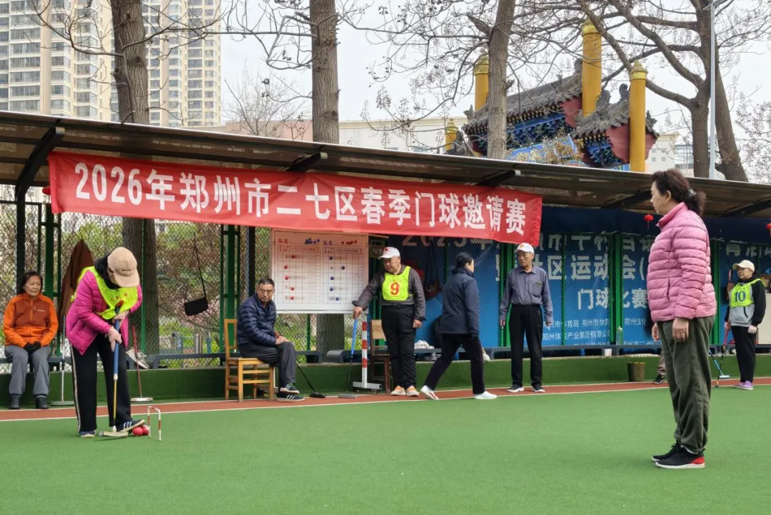 3月26日,2026年郑州市二七区春季门球邀请赛在滨河门球场开赛。近百名门球爱好者以球会友,挥杆击球间尽显专注与专业,赛场氛围热烈有序。最终市党校代表队摘得冠军,第二高级中学代表队、军休八站代表队分获亚、季军,赛事为中老年体育爱好者搭建了优质交流平台。