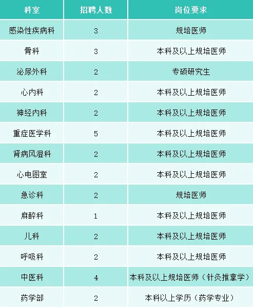 3.应聘医师岗位需取得执业医师资格证书、住院医师规范化培训证书,专业型硕士研究生或取得中级职称者优先。