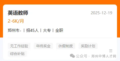 1、公众号: 中博人才网