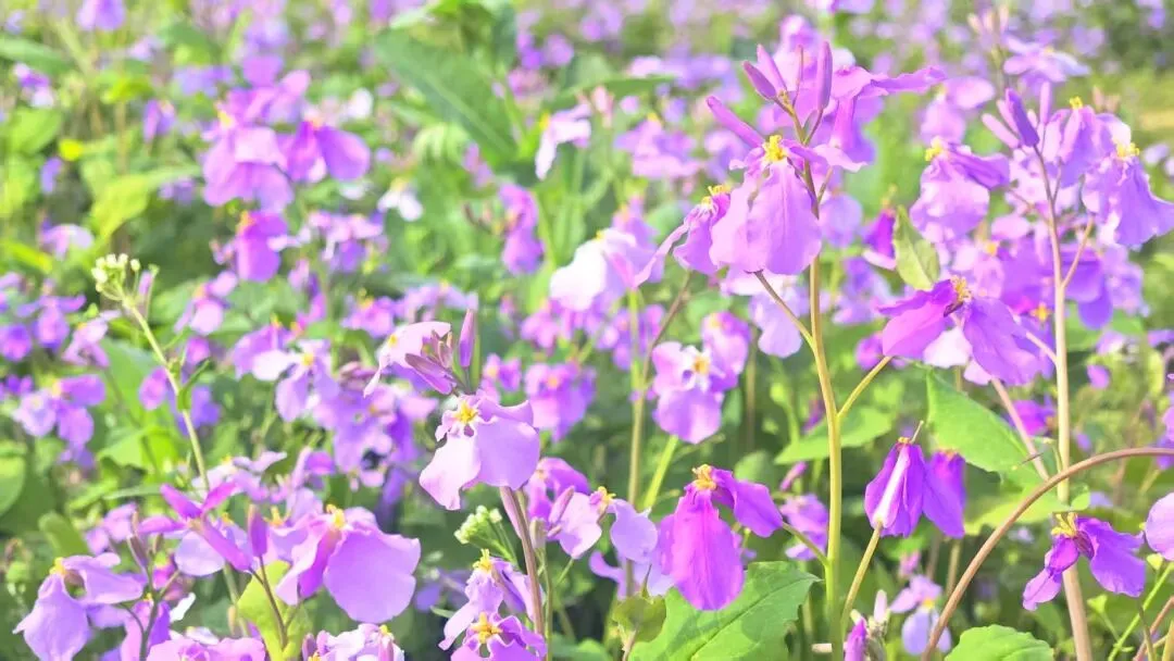 穿行在蜿蜒的木质步道上,两旁的二月兰没过脚踝,阳光透过枝叶的缝隙洒下来,在花海上投下斑驳的光影,微风拂过,花浪轻轻摇曳,偶尔有花瓣轻轻落在肩头,氛围感直接拉满。