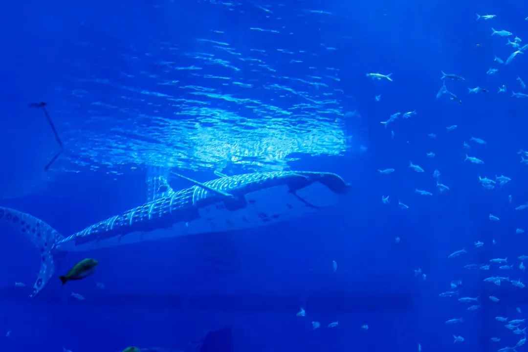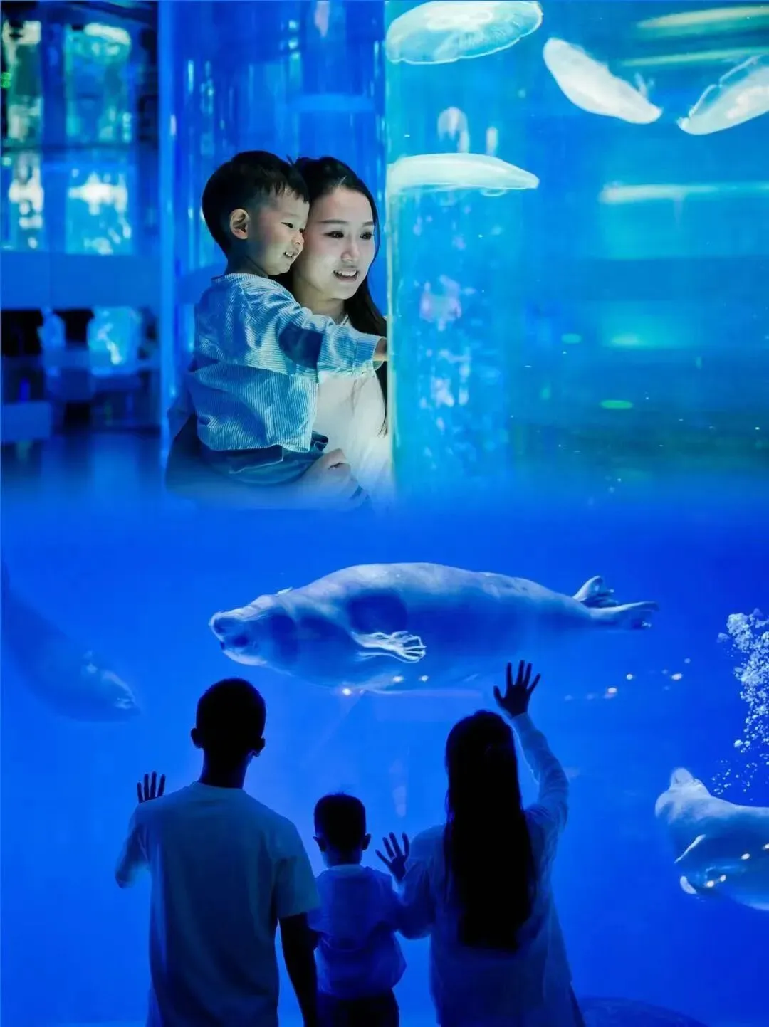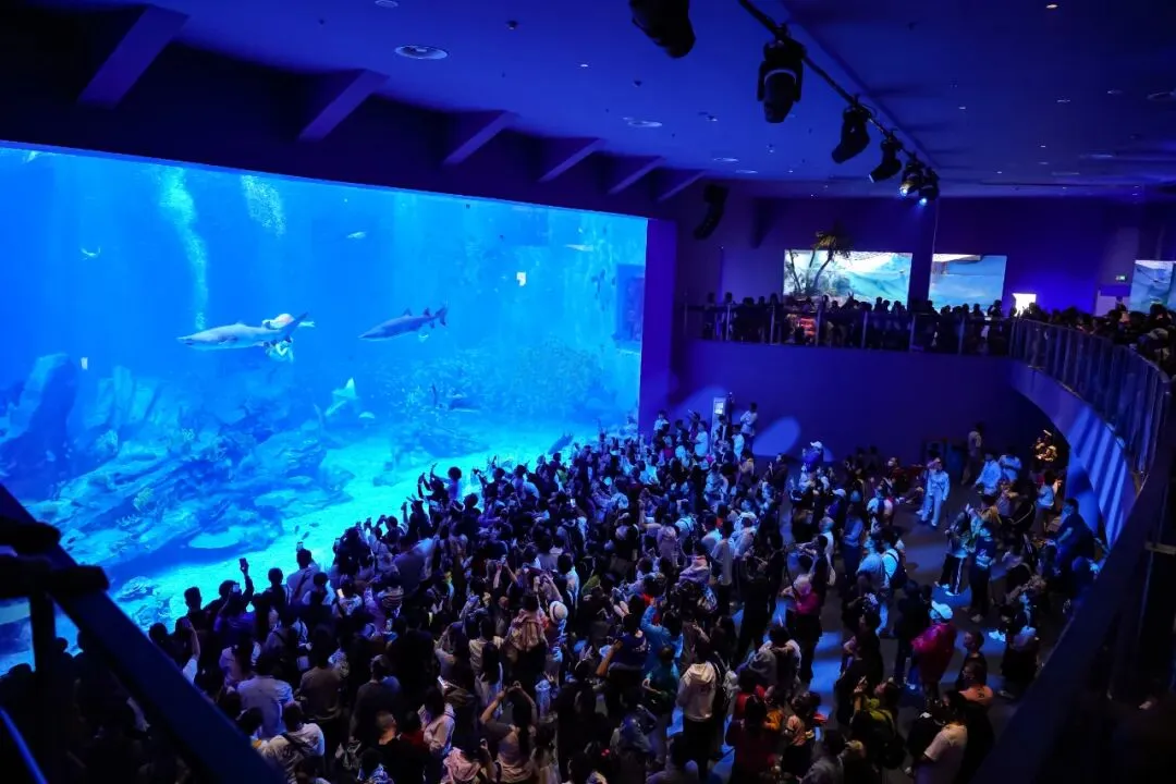 拥有中原最大展面的无边际海底视窗,还展示有世界首款机甲鲸鲨和机甲鳐鱼。