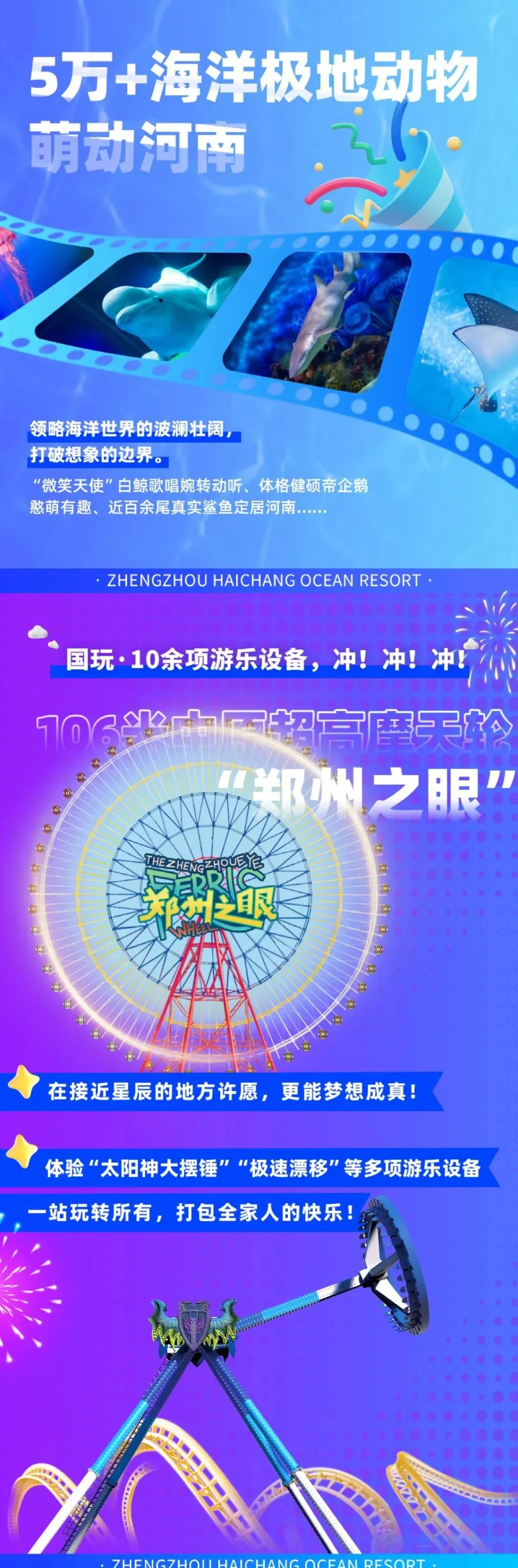 郑州海昌海洋旅游度假区,还把独具特色的海洋文化与国际知名IP“奥特曼”有机融合,定制打造“奥特曼主题娱乐区”。园区内,奥特曼冰封剧场、奥特曼世界主题展览区、奥特曼主题餐厅英雄店、奥特曼主题游乐设备等,圆谷制作株式会社原创剧目《奥特英雄连接吧!光之力量》将以特色的声光电技术,将奥特曼系列特摄剧集的魅力进行多元化呈现,为游客呈现跌宕起伏、光影变幻的精彩演出。园区外,“全球首座奥特曼主题小镇”包括全球首次亮相的ULTRA PARK主题酒店客房和布莱泽奥特曼主题酒店客房、全国首家奥特曼主题怪兽餐厅、全国最高的迪迦奥特曼雕塑也将首次亮相中原,集住宿、美食、购物、互动游艺区于一体的奥特曼主题小镇,也将在23年内开业。