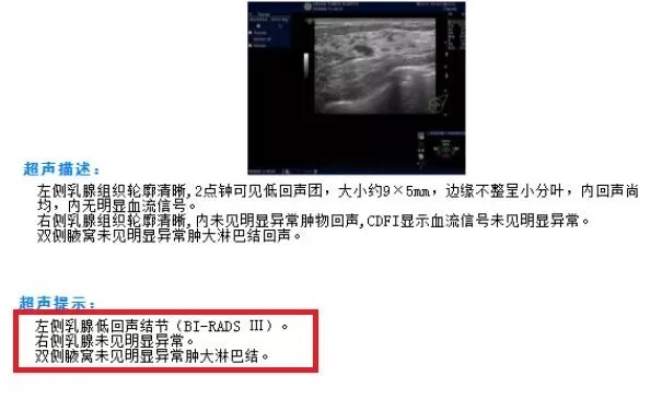 妹妹非常明确诊断为乳腺癌;而姐姐乳腺彩超提示左侧乳腺低回声结节,BI-RADS评估为3类,看似没有问题,但卢振铎主任认为,低回声团边缘不整呈小分叶,非常可疑;加之妹妹已经确诊为乳腺癌,姐姐也有家族聚集性高危因素,医生建议姐姐穿刺进行病理活检。