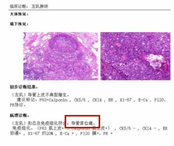 而最终的病理活检确定为导管原位癌,通俗讲就是非常早期的乳腺癌。