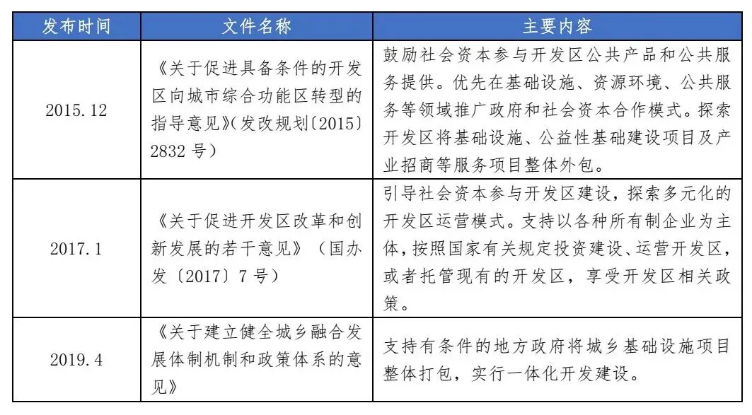 在我国现行的法规政策中关于片区开发尚无统一和明确的定义,实践中一般是指在符合国家及地方规划的前提下对成片区域进行系统性地改造、建设、运营和维护的行为,通常会包括土地一级开发、配套基础设施和公共服务设施的建设运营,以及相关的产业导入服务等内容。