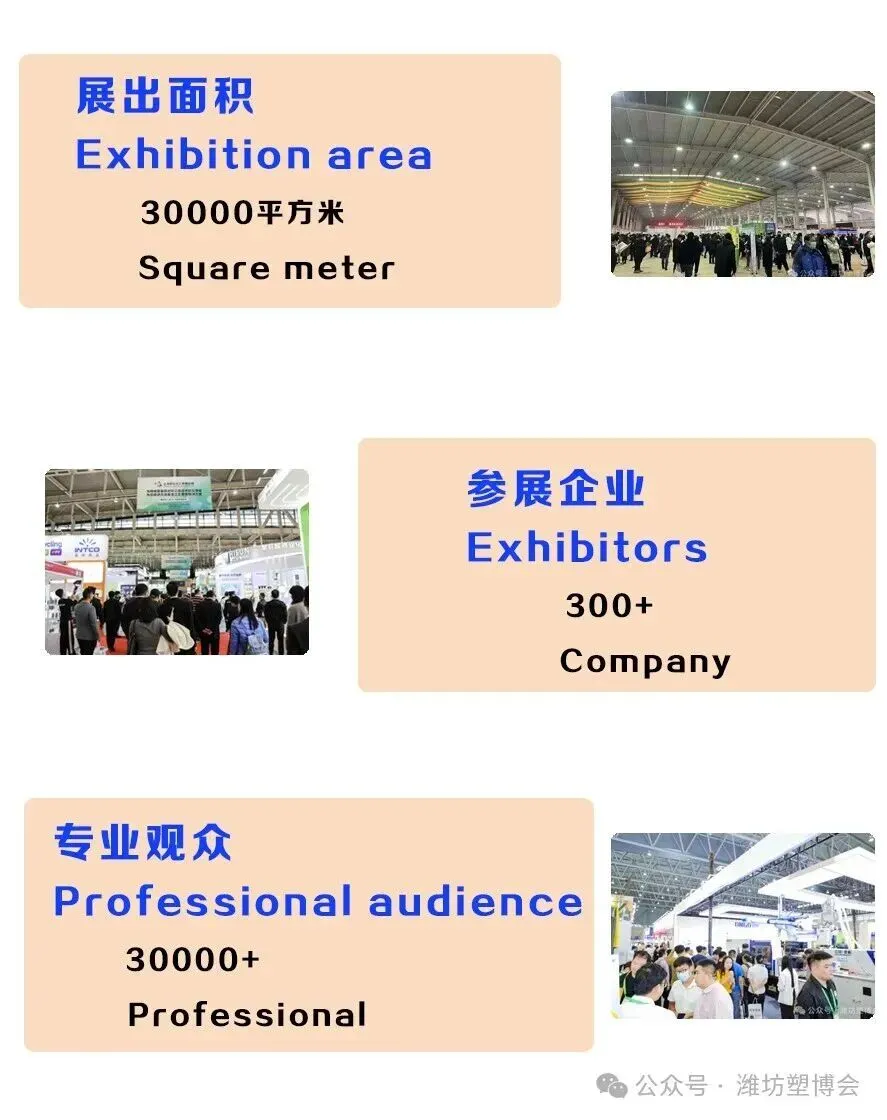 上届展会2025.5.9-11号在潍坊金宝国际会展中心举办,有200多家企业参展,有元利化学、山东华潍、江苏科曼尼、苏州统益、苏州同大机械、山东伟力、山东塑到家、营口万程、日照世科、莒县金成、莒县浩达、莒县信和诚、莒县信佳、莒县明技、山东北宏、江阴启明、浙江欧力、瑞安云辉、张家港龙焱、佛山高明克莱特、山东贝美特、江阴瑰宝、广东峰明、山东诺森、山东通佳、山东百利、青州新明、江苏意久机械、莱芜冠华、大连旅顺鑫源风环等国内外著名企业参加。