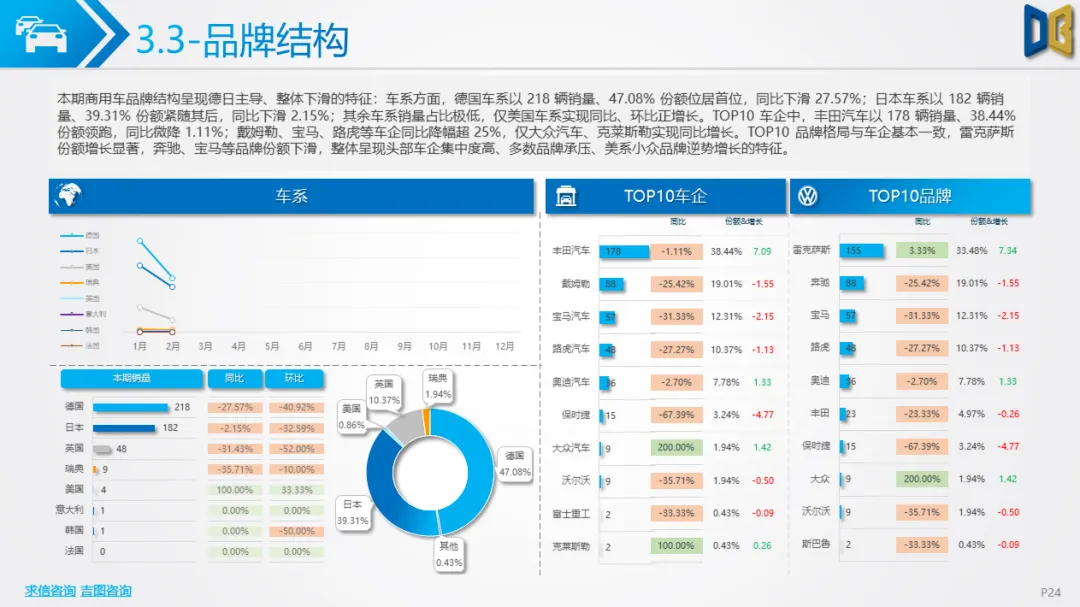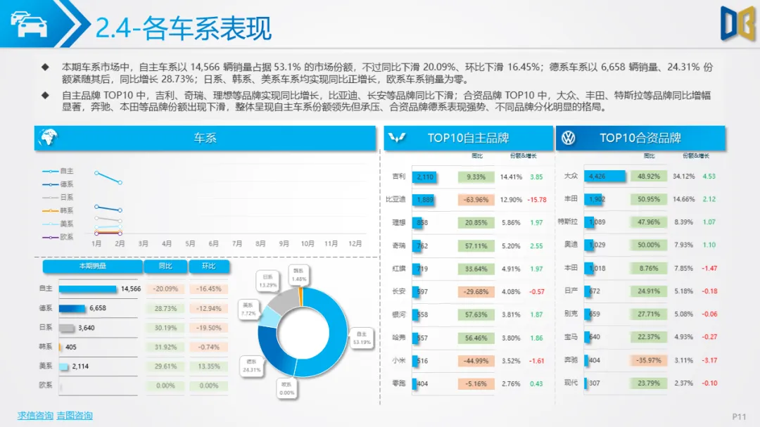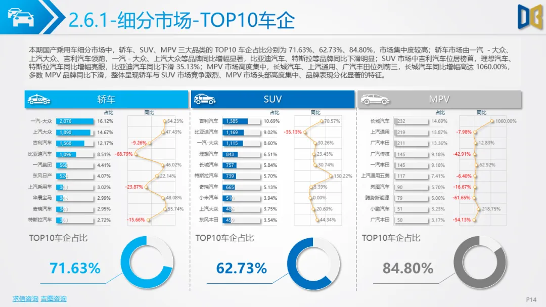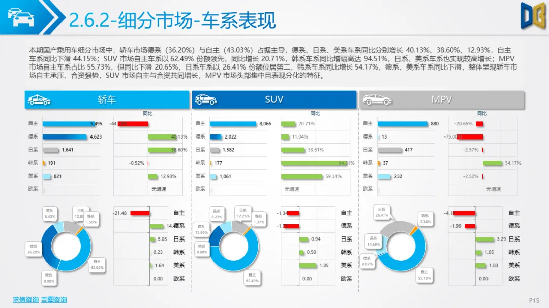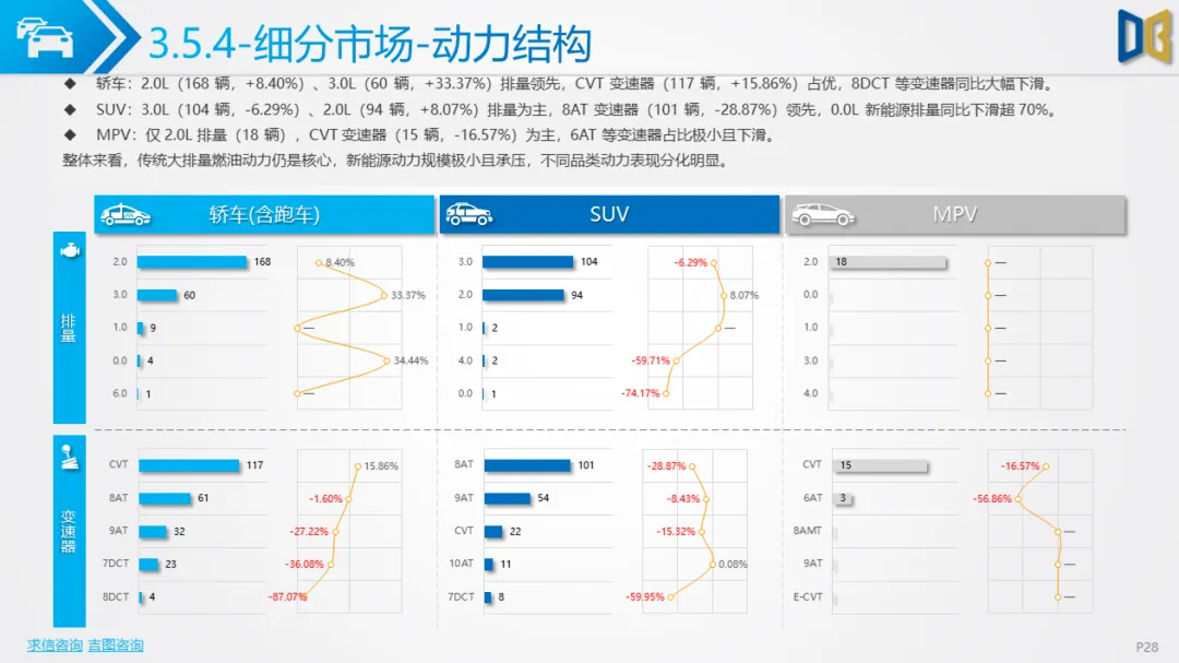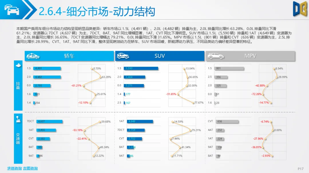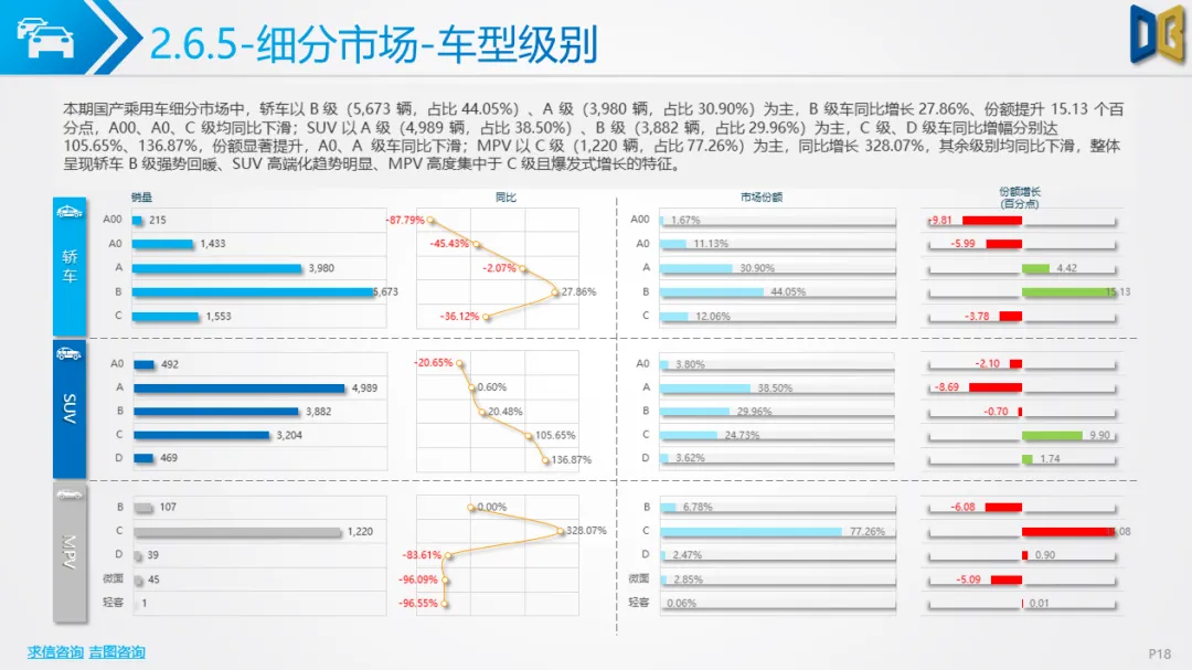 乘用车市场以中高端车型为主,进口端日系高端轿车、部分豪华SUV逆势增长,MPV市场高度集中且疲软;国产端燃油车仍占主导,新能源占比极低(普遍低于3%),多数品类同比下滑,转型遇冷。