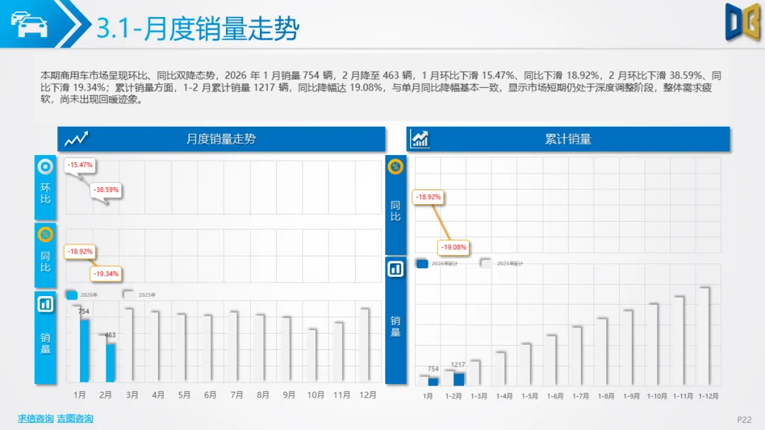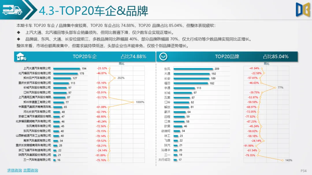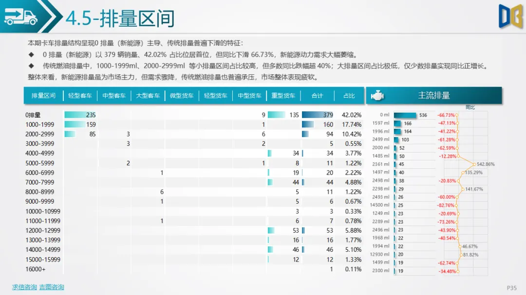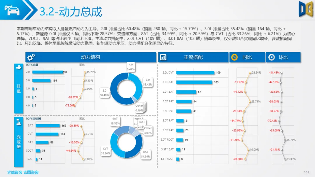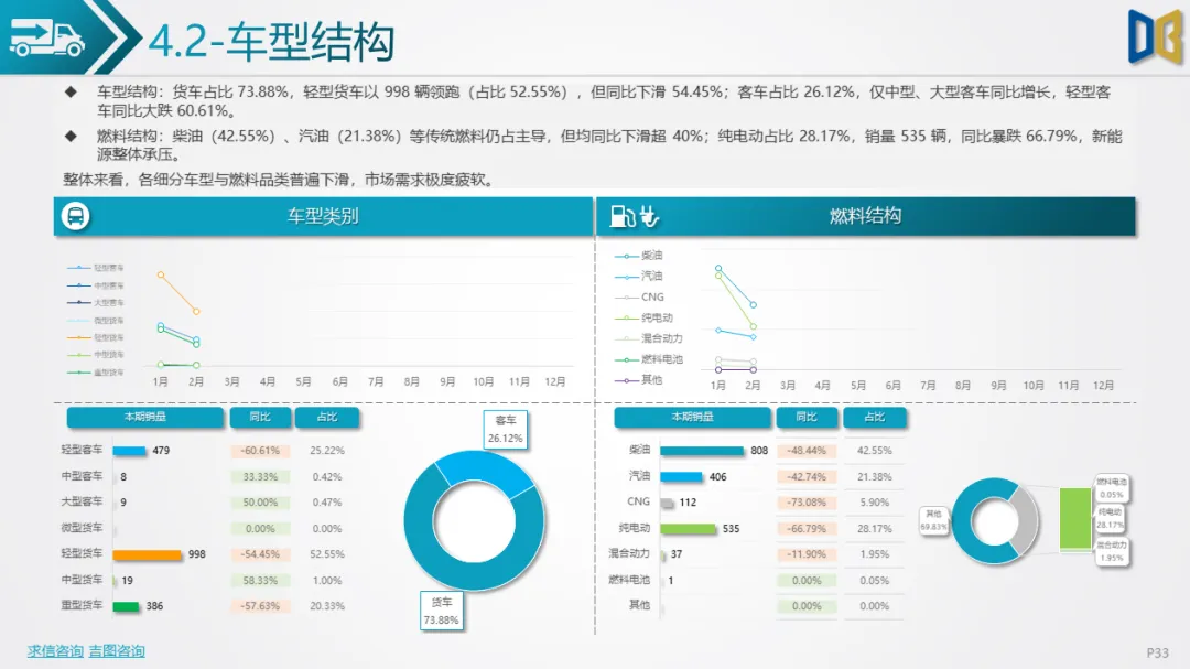 商用车以卡车为核心,货车占比73.88%,轻型货车领跑但同比大跌;新能源动力虽有一定占比,但需求骤降,传统燃油品类也普遍下滑,反映出物流、基建下游需求恢复不及预期。