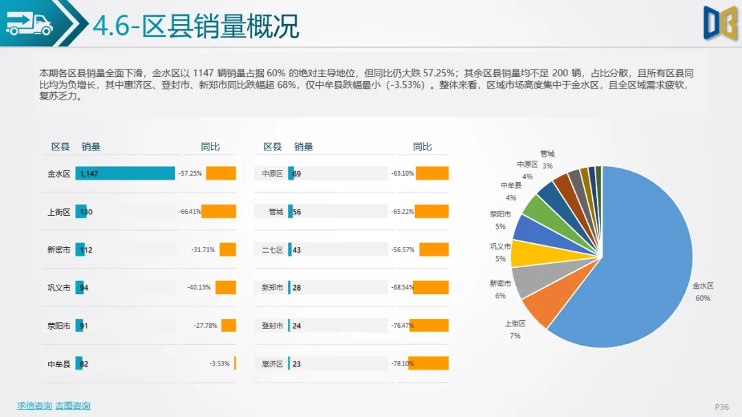 区域格局上,市场高度依赖金水区,其销量占比达60%,虽为核心消费区,但同比仍大跌57.25%;其余区县销量均不足200辆,占比分散,且所有区县均呈同比负增长,惠济区、登封市等跌幅超68%,仅中牟县跌幅最小(-3.53%),全域复苏承压。
