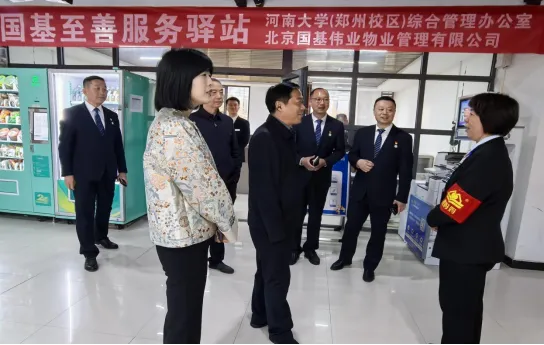 随后,调研组抵达河南大学郑州校区对北京国基河南大学物业管理项目进行现场调研,感受物业服务全程融入校园文化氛围情况。