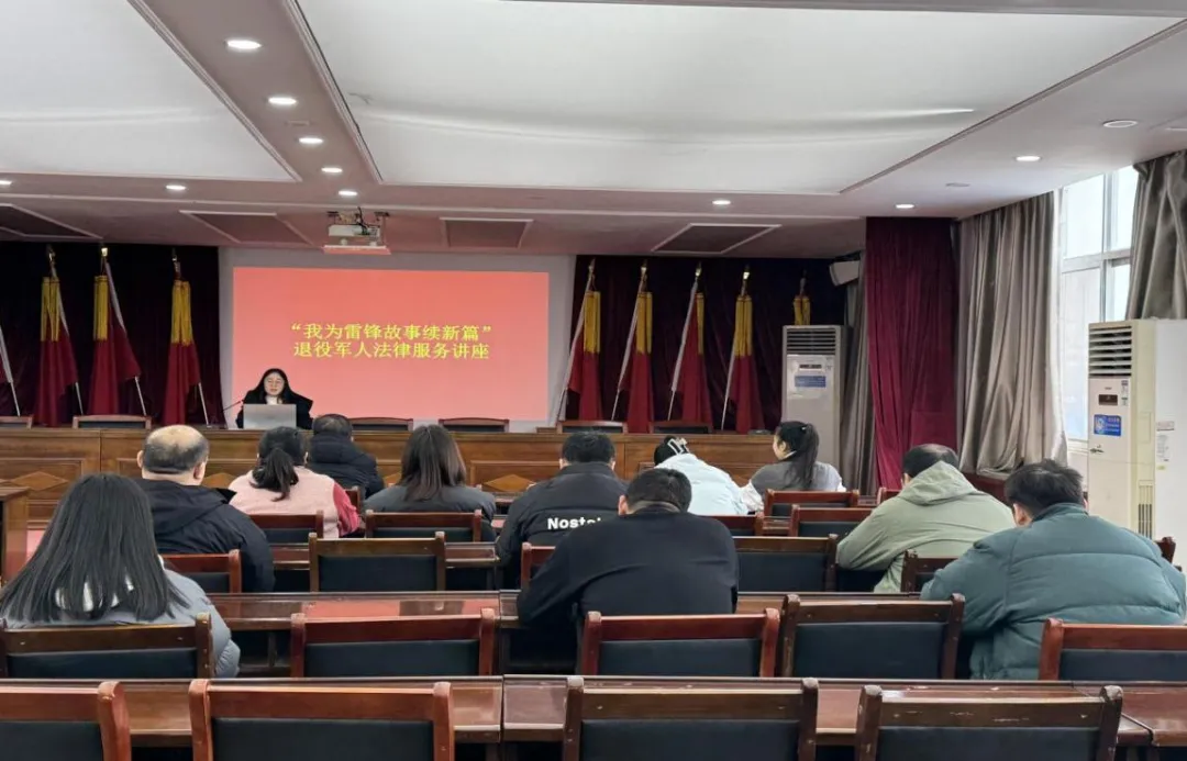3月6日,二七区“戎耀绿城”德化街街道退役军人志愿服务队组织开展“我为雷锋故事续新篇”退役军人法律服务专题讲座,用法治护航老兵权益,以专业服务践行雷锋精神,辖区40多名老兵参加此次活动。