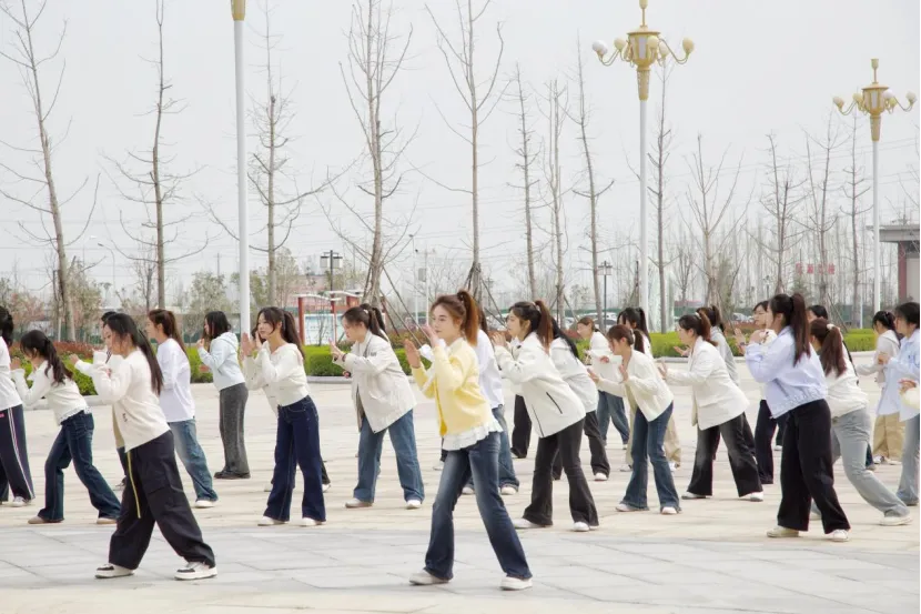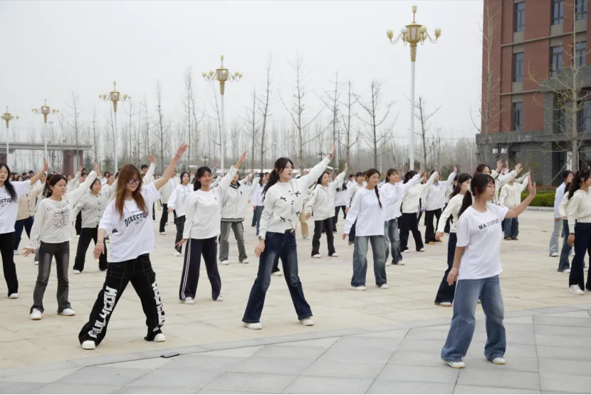 青春正当时,运动不打烊!3月26日下午15:30,郑州信息工程职业学院首届高燃体操运动在北校区国旗台广场顺利开展,北校区全体学生齐聚一堂,以活力姿态书写青春风采。