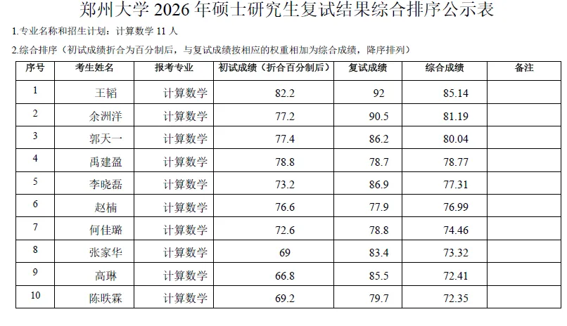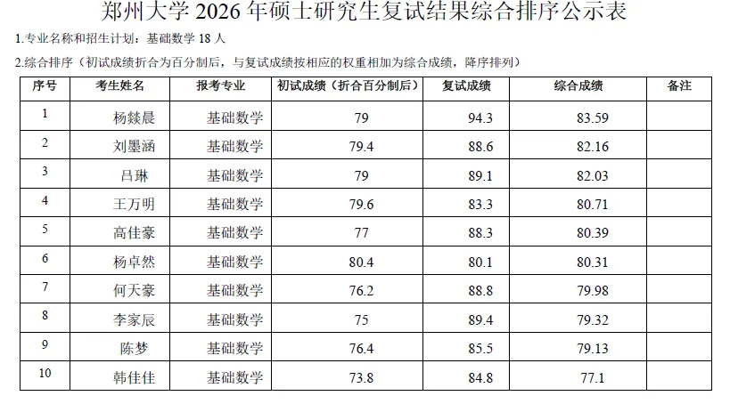 当前位置:首页>郑州>郑州大学数学与统计学院2026考研复试结果
