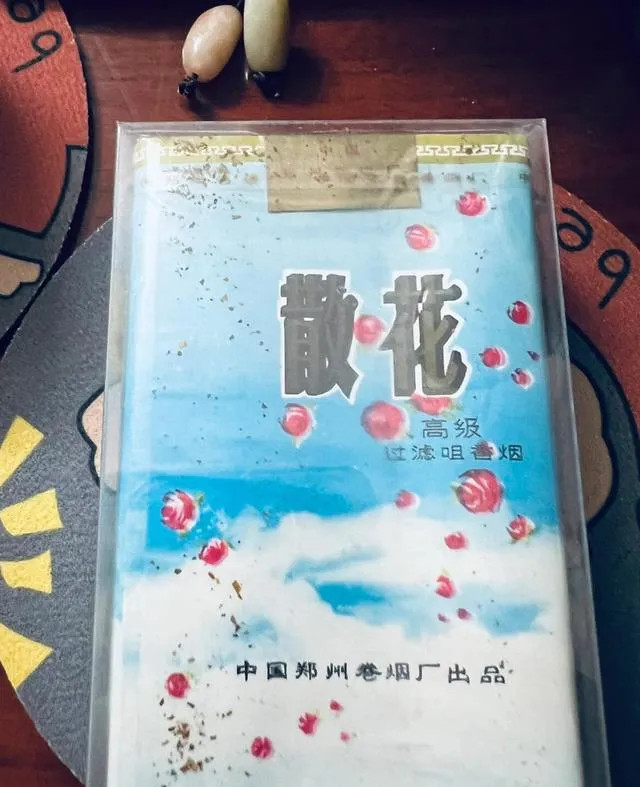 图中这盒天蓝底子叫散花,字儿写得透亮,点缀着一串红花头,小时候家里大人偏爱这种包装说它顺眼,夏天晚上坐在院里纳凉,有人就抖出一支散花点着,嘴里一吸,烟圈绕着月亮漂,一下子把人带回旧楼房下边的土路,妈妈那会儿总说,牌子虽然普通,烟气柔,出门干体力活抽着不呛嗓子,这种烟早年可不多见,后来渐渐就换成别的包装了。