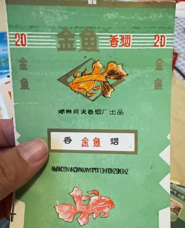 这片绿色烟壳子金黄金鱼画得贼灵光,叫金鱼,当年河流卷烟厂出的,盒面上一条游得活泼的金鱼,两边还配对着红字,家里长辈总说,金鱼牌抽着有股子甜头,年轻人嘴馋的时候偷偷掏一支,抽完还装没事人,印象里亲戚有段时间就认准金鱼,不管去谁家串门,手上都捏着这一包,牌子不多见,现在更是买不到了。