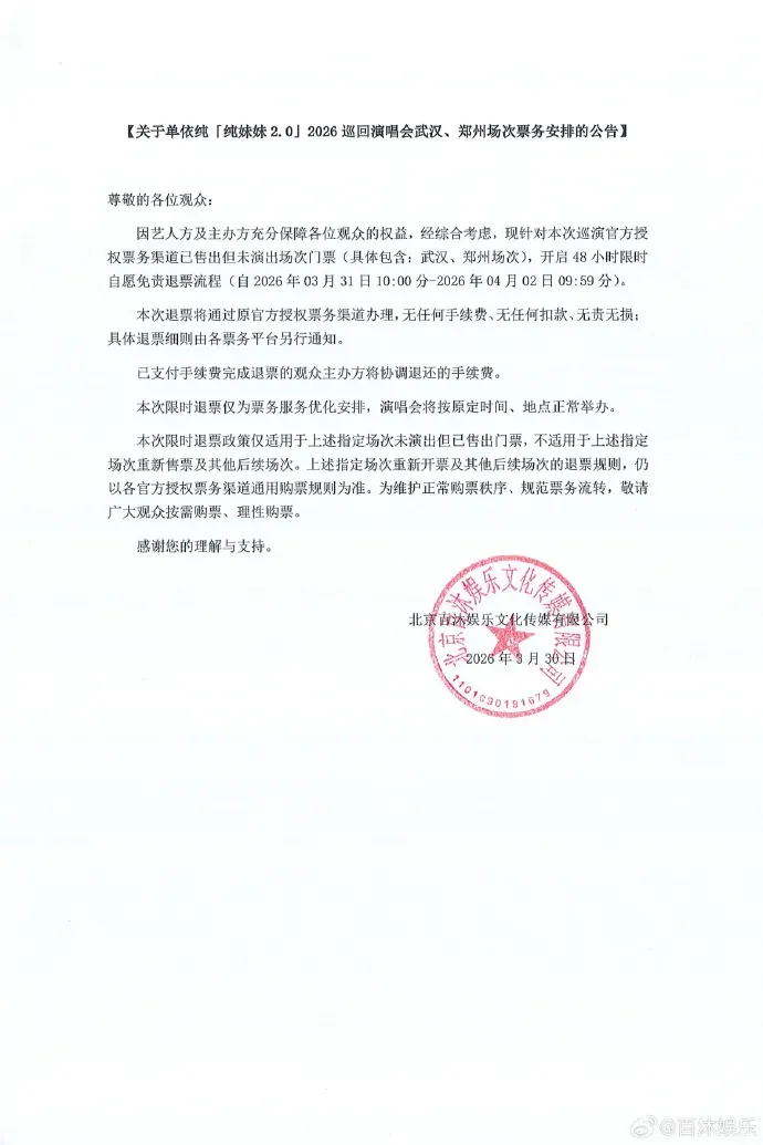 单依纯巡演主办方致歉:已第一时间叫停后续所有巡演场次中歌曲《李白》的表演安排;向李荣浩、单依纯道歉