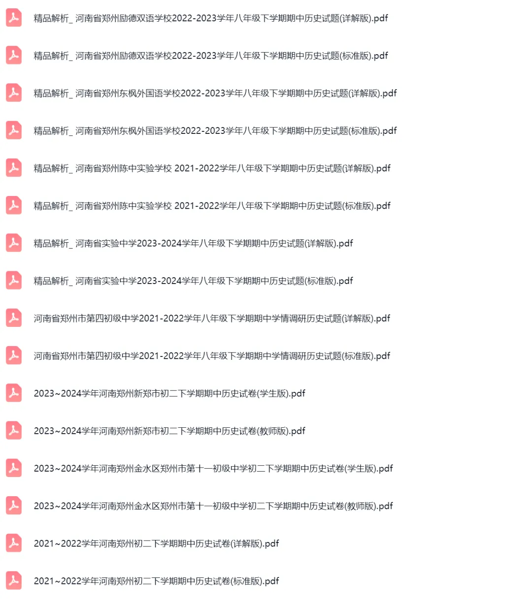 >30套2021-2024学年河南郑州初二下学期期中历史试卷及答案解